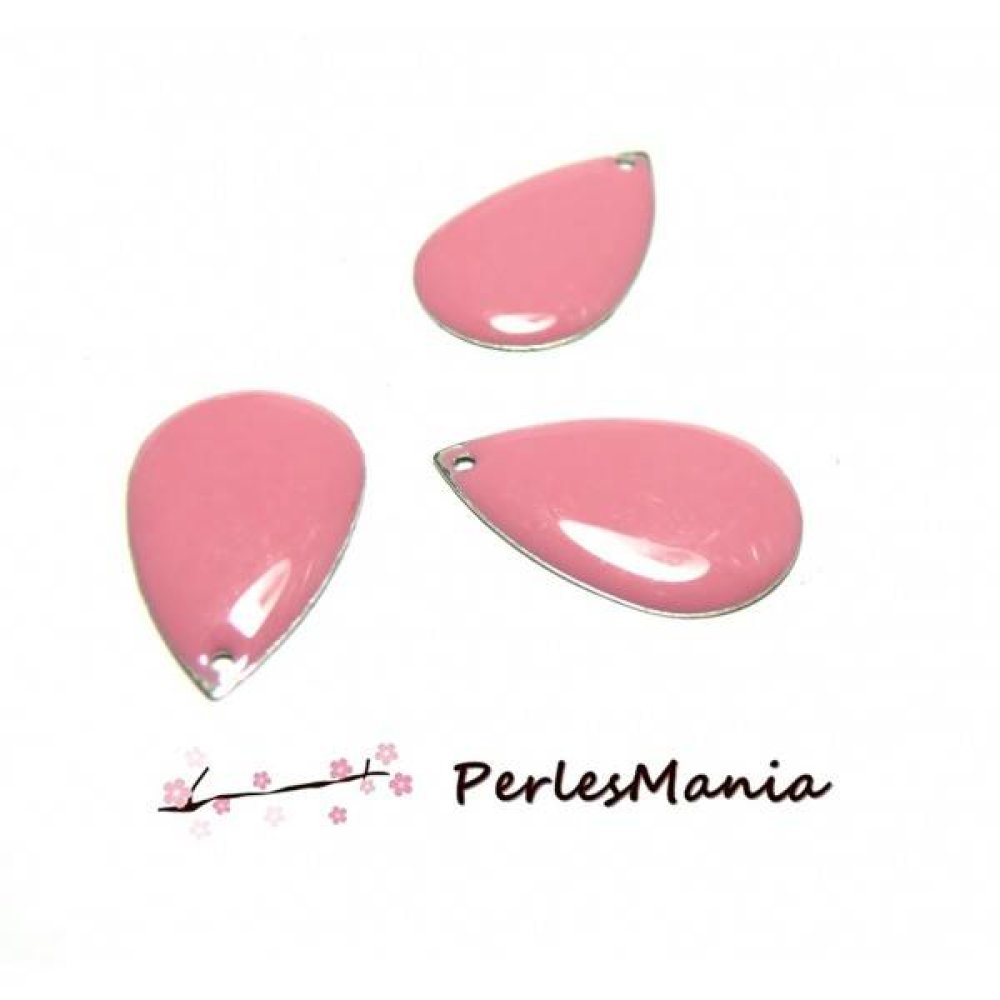 10 SEQUINS EMAILLES FORME GOUTTE D'EAU ROSE 22mm, DIY sur une base en métal argenté. Émaillé d'un coté Matière : métal sans nickel