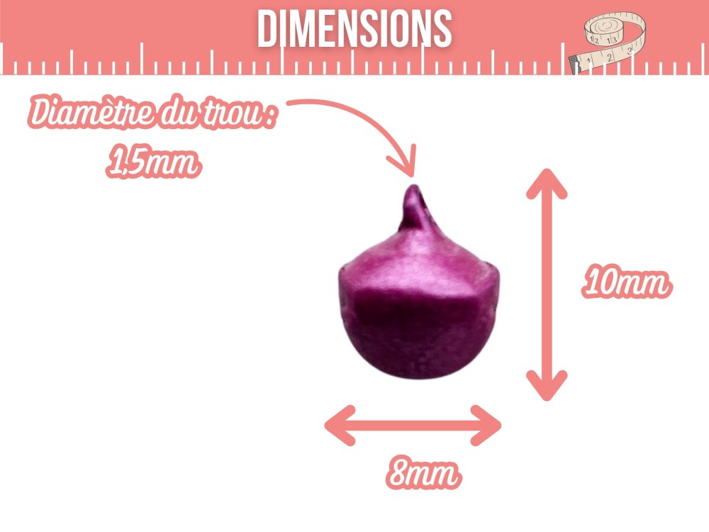 Avec leurs dimensions de 8 x 10 mm et un trou d’attache de 1,5 mm, elles se fixent facilement sur tout type de support : fil, chaîne, cordon ou anneau 🧵.