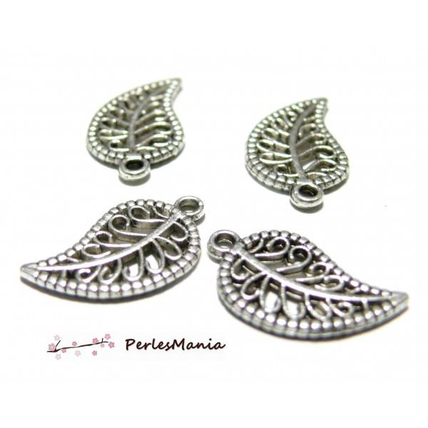 100 pendentifs, breloque feuille ajourée 2B4422 VIEIL ARGENT, DIY Dimensions: 10 par 19 par 1mm Idéal pour création de collier et bracelet. Pendentif et apprêt pour bijoux. Apprêt garanti sans nickel, sans plomb, sans cadmium