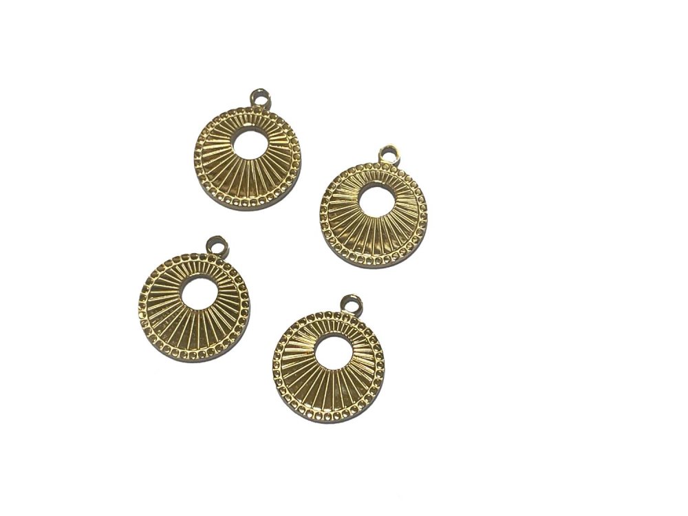 Breloque ronde en acier inoxydable 316 L, plaqué or 18 k.