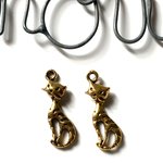 Lot de deux breloques chat en métal doré vieilli à piquot