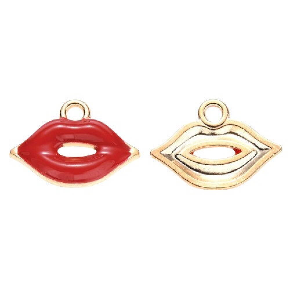 2 Breloques lèvre émail rouge 13 mm pendentif lèvre création bijoux