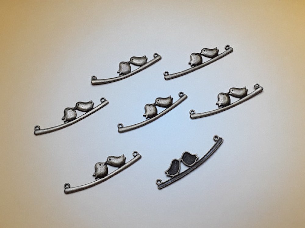 2 connecteurs bijoux oiseau sur branche 5.3x1.3cm bronze