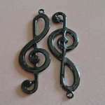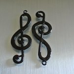 Lot de deux grandes breloques métal laqué noir forme clef de sol, 62 x 21 x 3 mm
