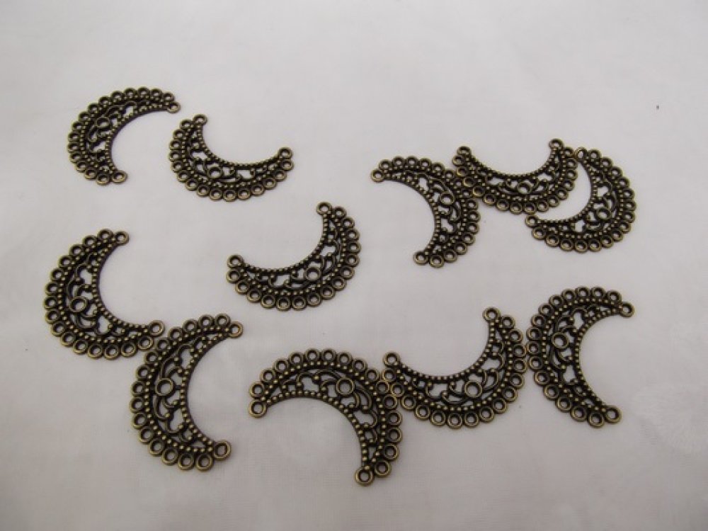 2 Pendentifs connecteurs arc de cercle ciselé ajouré 35x22mm bronze avec 15 Trous