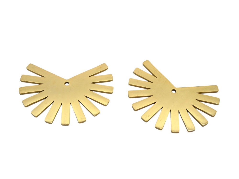 Lot de 2 pendentifs forme éventail en acier inoxydable 201 doré.