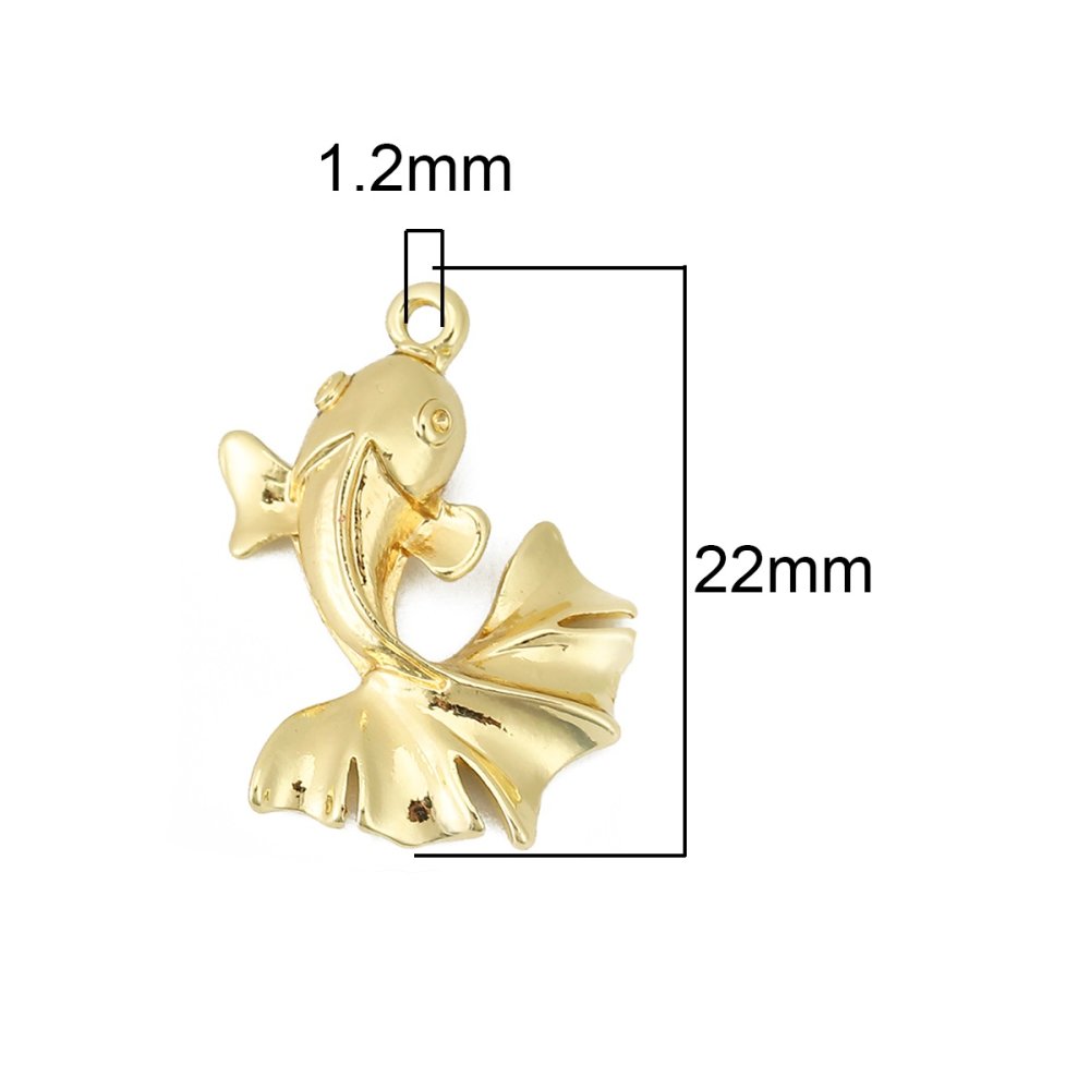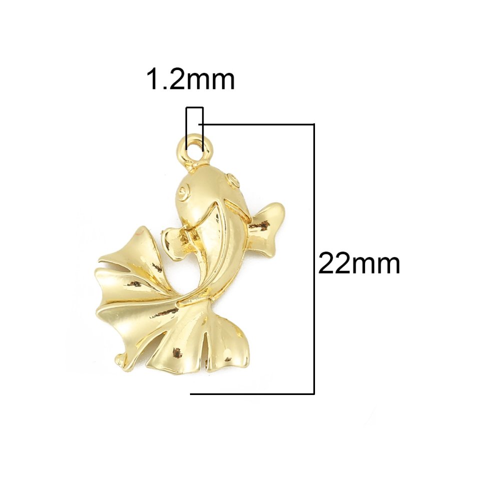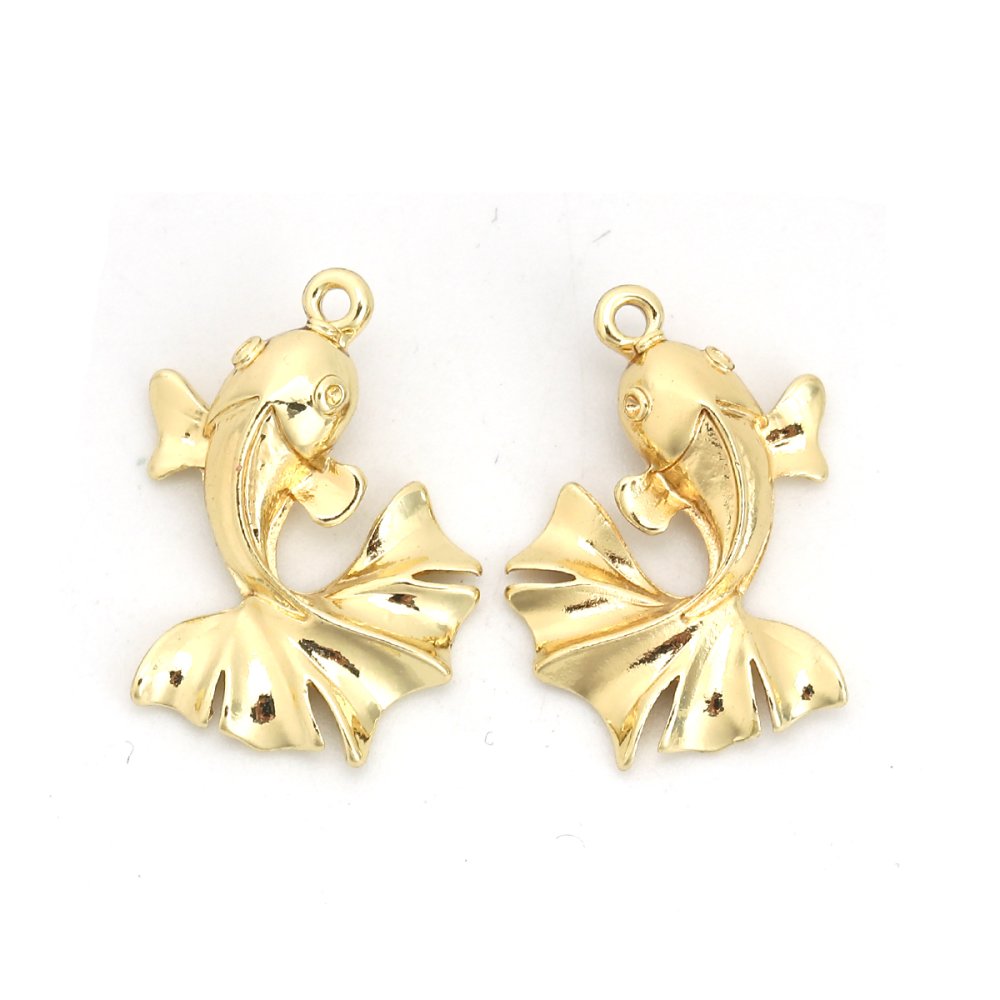 2 poisson type carpe koï en métal alliage doré. Métal respectant les directives de l'UE concernant l'utilisation du plomb, du nickel.