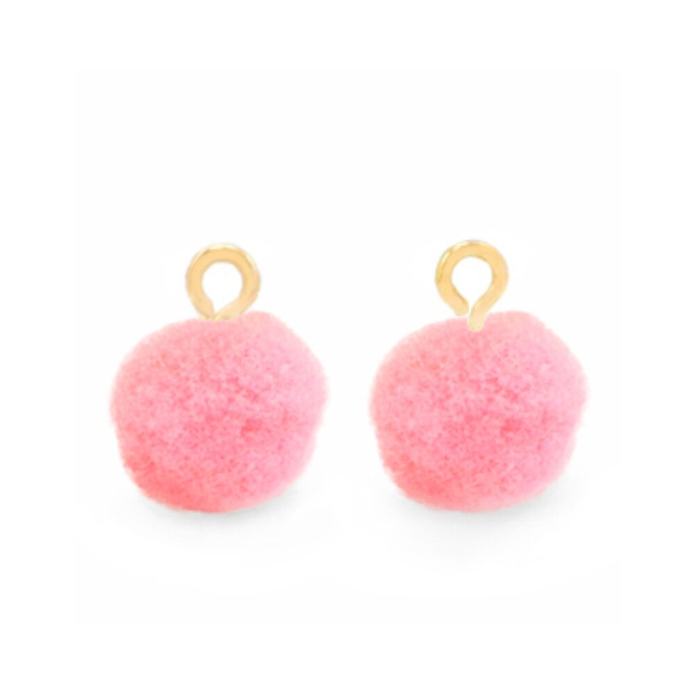 2 pendentifs pompon rose néon anneaux doré pompon pelucheux 10 mm