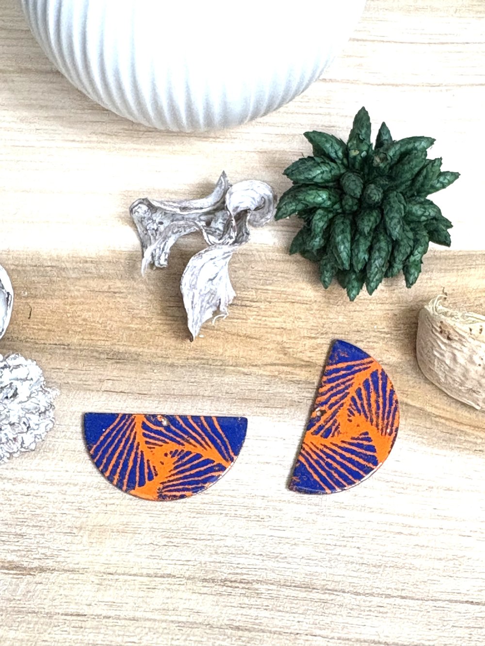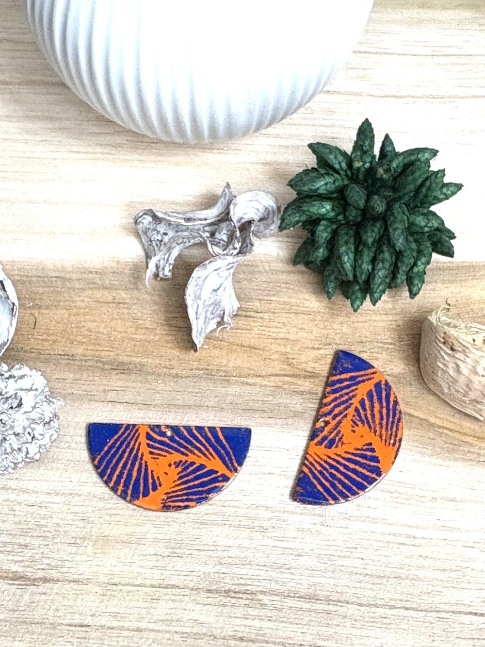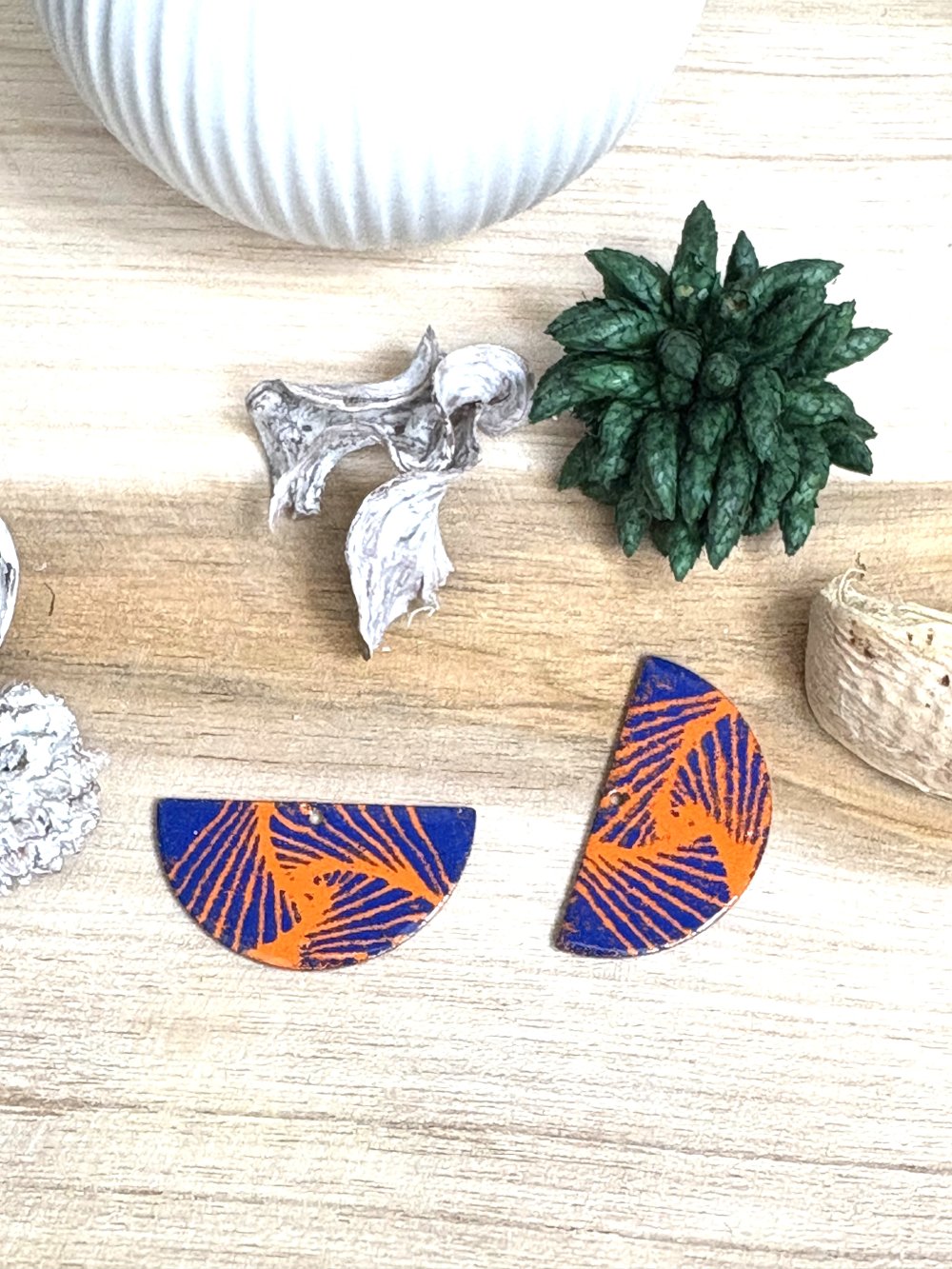 2 sequin émaillés demi lune orange et bleu marine 30x15 mm 2 faces