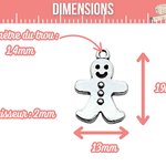 Donnez vie à vos créations avec ce lot de 20 adorables breloques bonhomme pain d’épice, un incontournable pour apporter une touche festive, gourmande et chaleureuse à vos projets DIY. Leur finition argent mat crée un effet doux et élégant, parfait pour accompagner l’esprit de Noël sans tomber dans l’excès brillant. Chaque petit personnage possède des détails délicats qui ressortent joliment dans vos compositions, qu’il s’agisse de bijoux, de décorations, d’embellissements ou d’accessoires personnalisés.