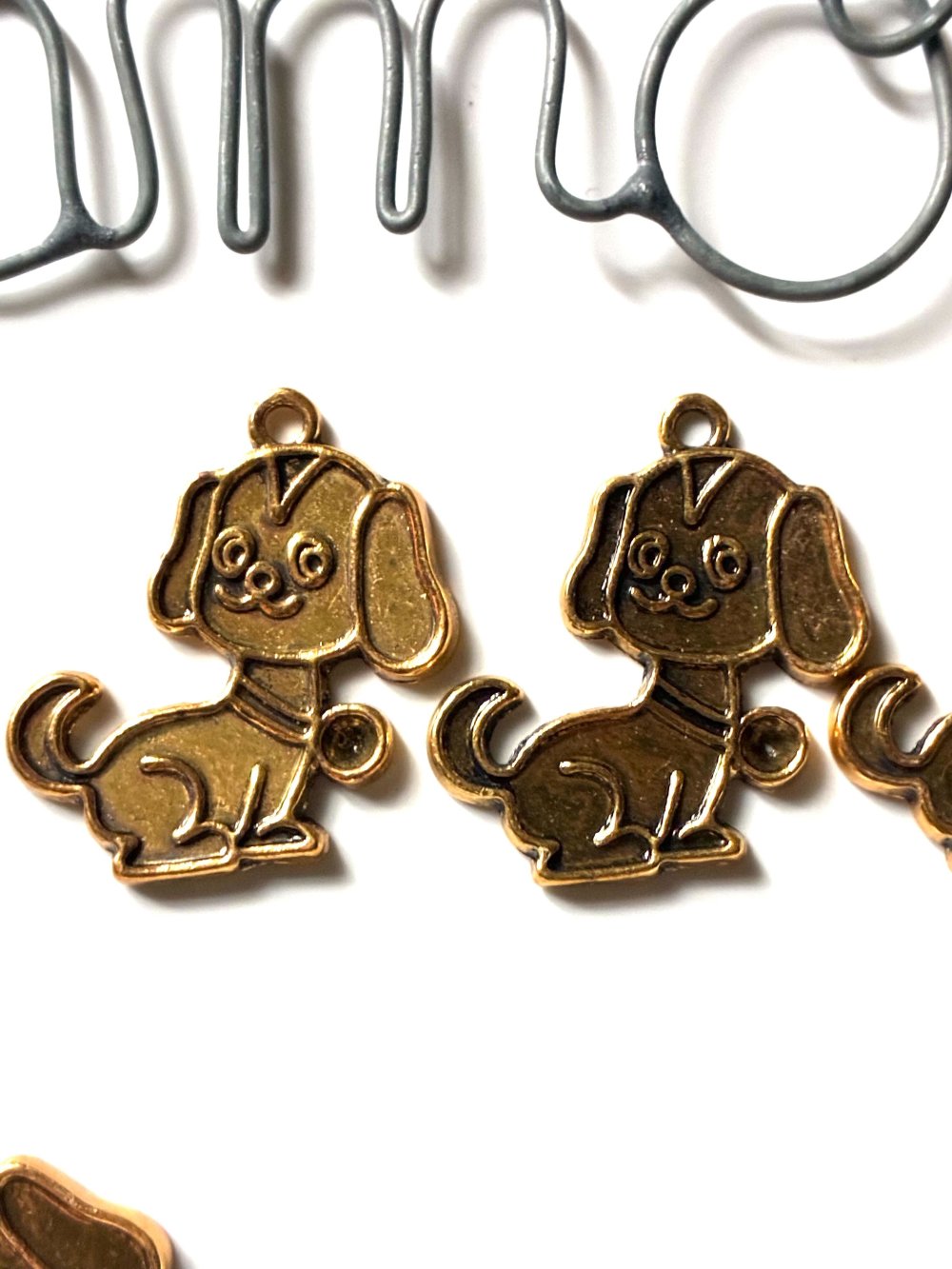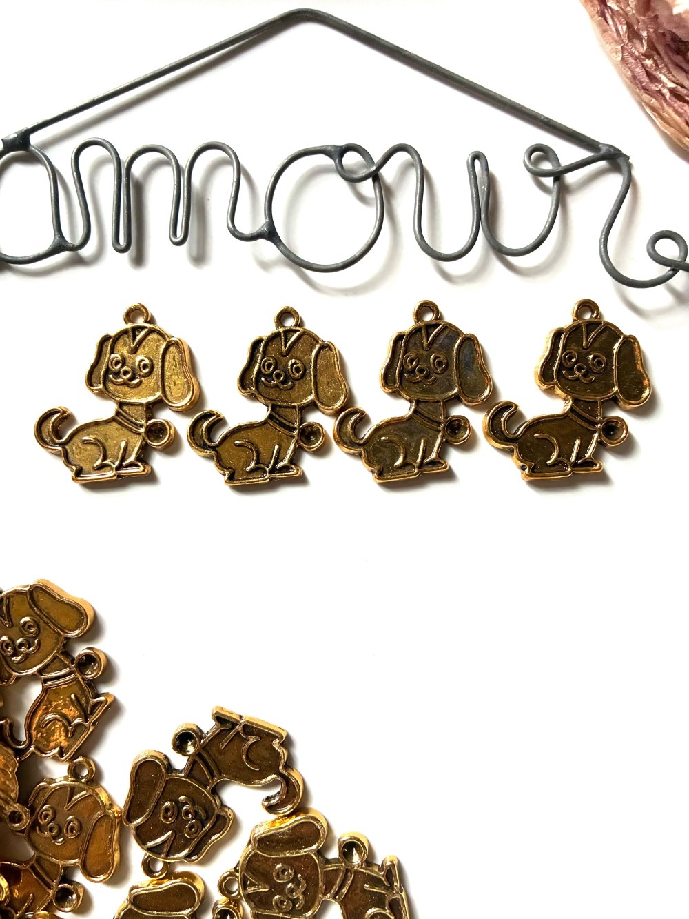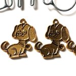 Ce lot est composé de 4 breloques chien en métal doré vieilli 29x22mm avec cadre pour cabochon ou strass 3mm.