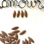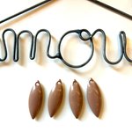 Ce Lot est composé de quatre breloques forme navettes en émail de couleur beige, dimension 18mmx7mm, percées en haut