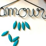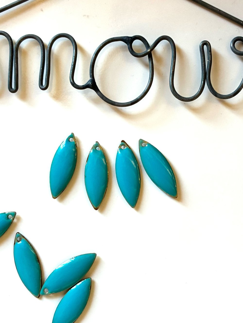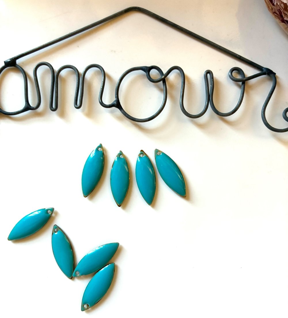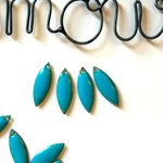 Ce Lot est composé de quatre breloques forme navettes en émail de couleur bleu, dimension 18mmx7mm, percées en haut