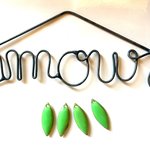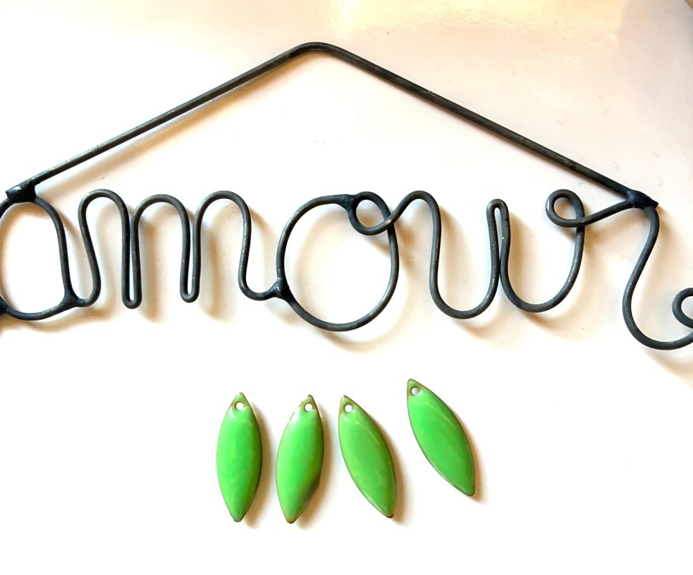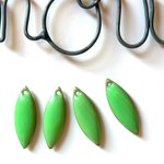 Ce Lot est composé de quatre breloques forme navettes en émail de couleur verte, dimension 18mmx7mm, percées en haut
