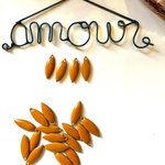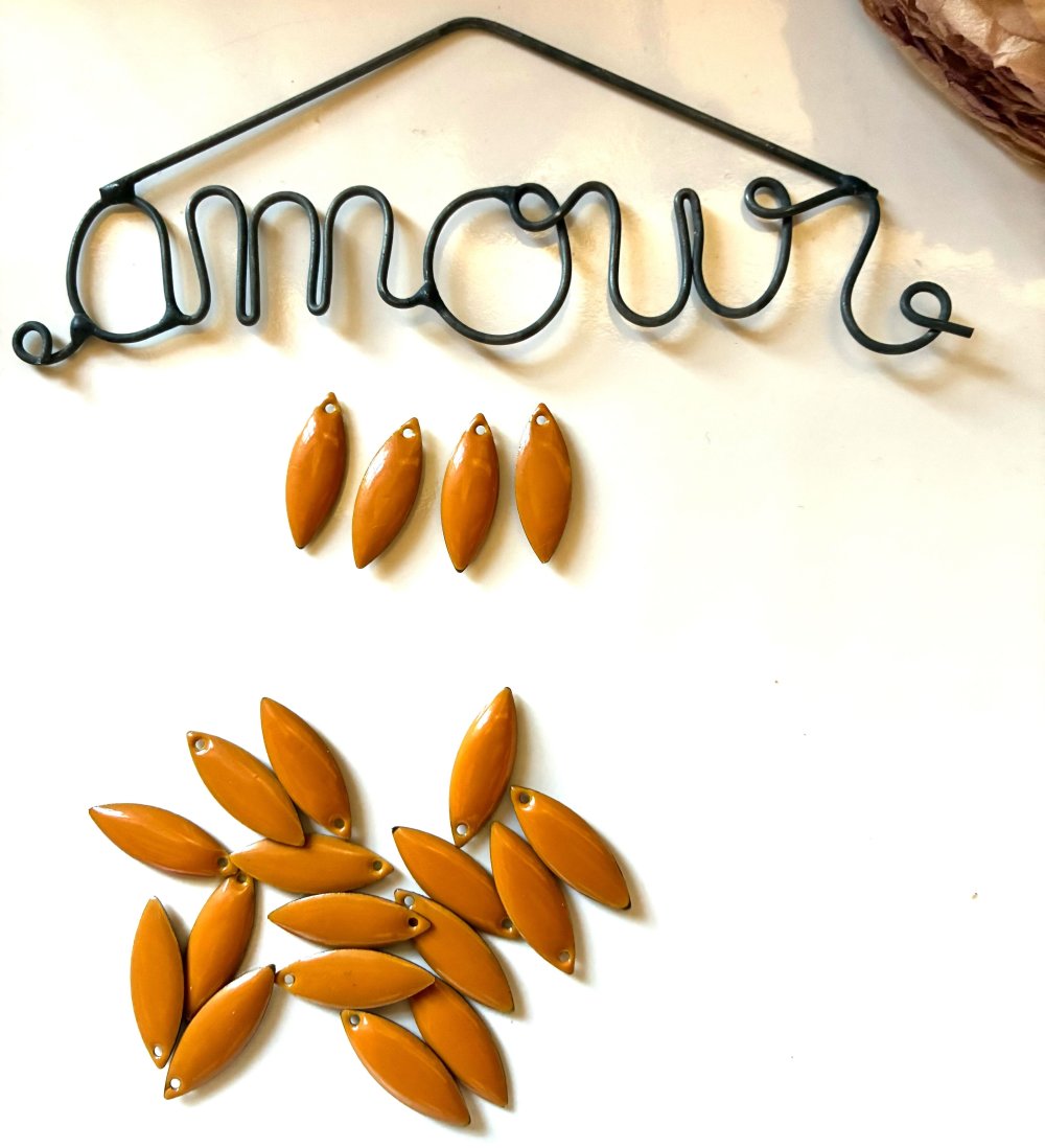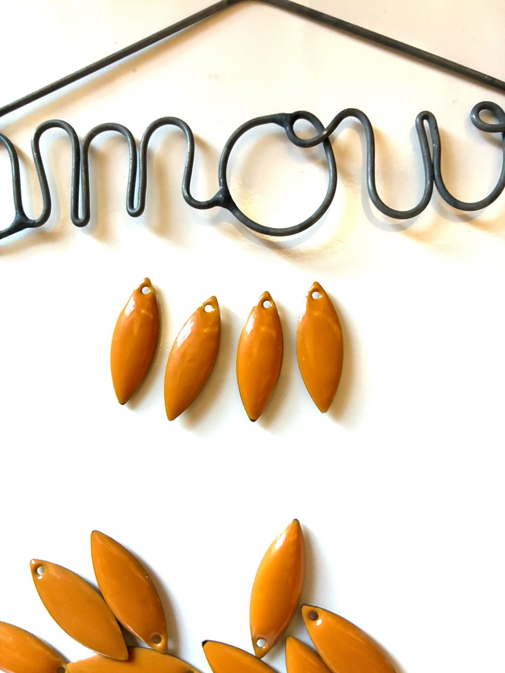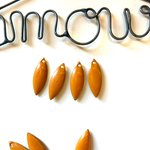 Ce Lot est composé de quatre breloques forme navettes en émail de couleur marron clair (caramel), dimension 18mmx7mm, percées en haut