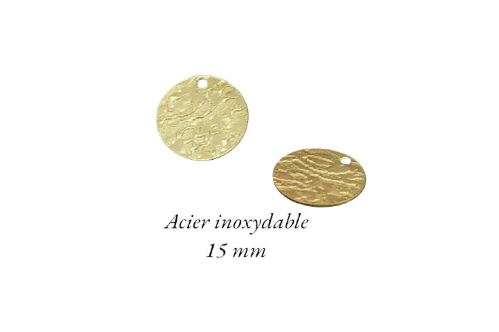 Lot composé de quatre breloques sequins, effets en relief, acier inoxydable doré 304, placage ionique.