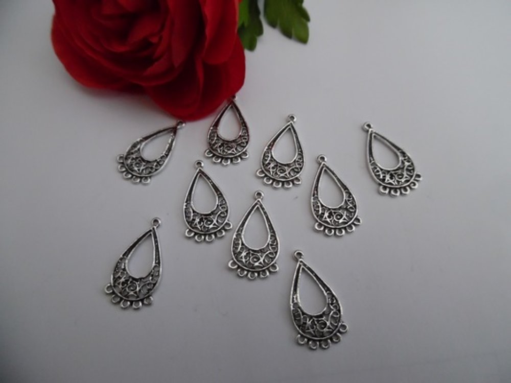Lot de 4 Pendentifs goutte ou Support de Boucles d'Oreille à Connecteurs 5 Trous Ajourés Argent Tibétain 25x13mm