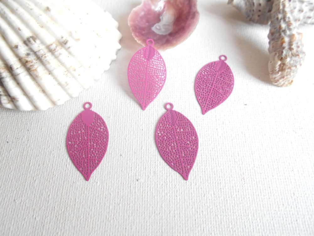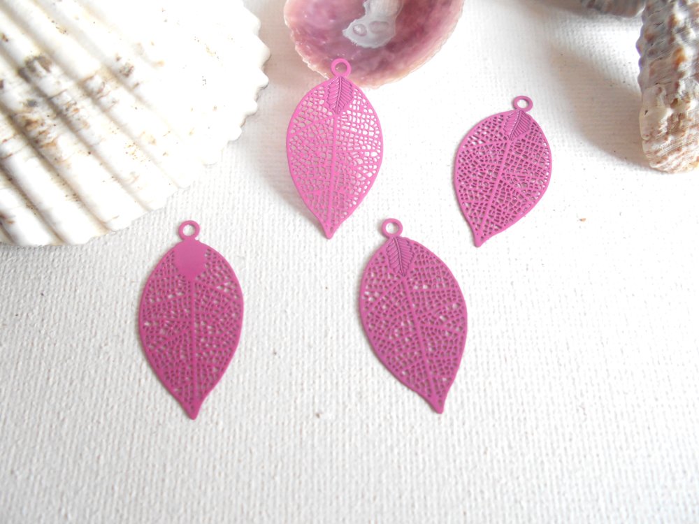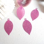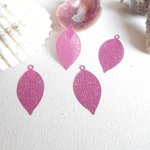 lot de 4 feuilles émaillées fuchsia 30X15 mm