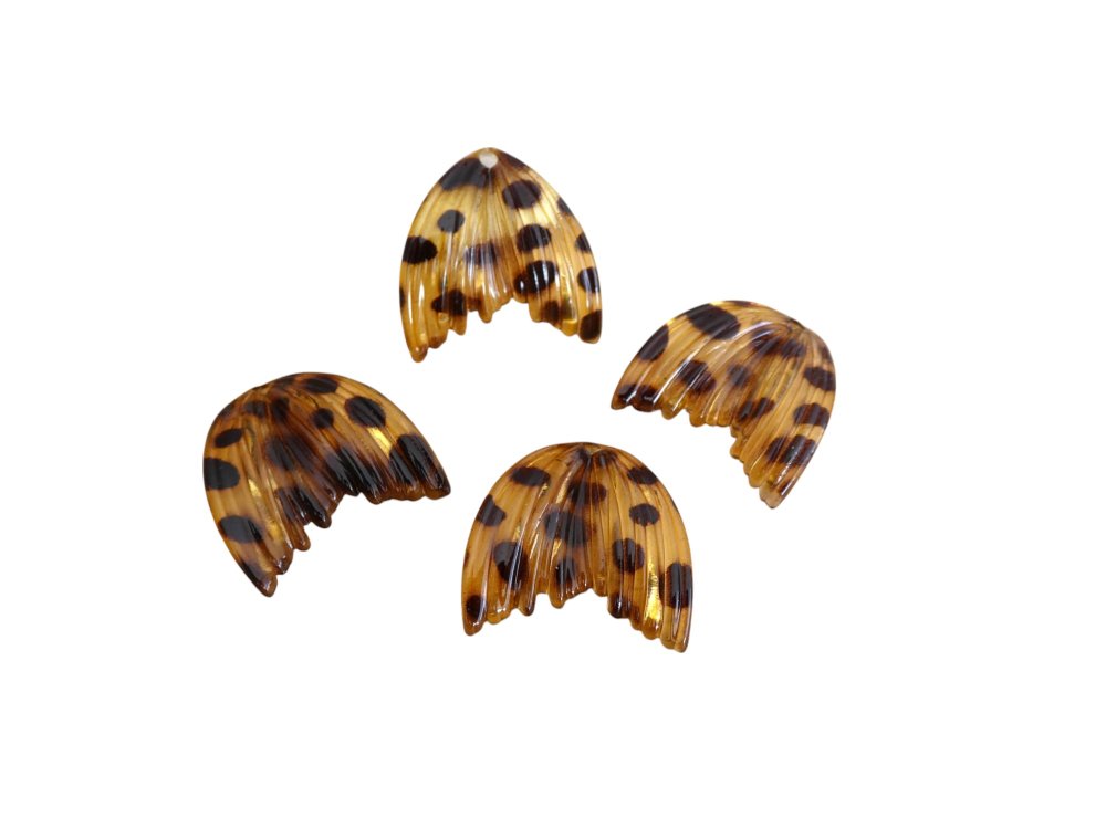 Lot de 4 pendentifs, breloques queue de poisson en acrylique imprimé léopard.