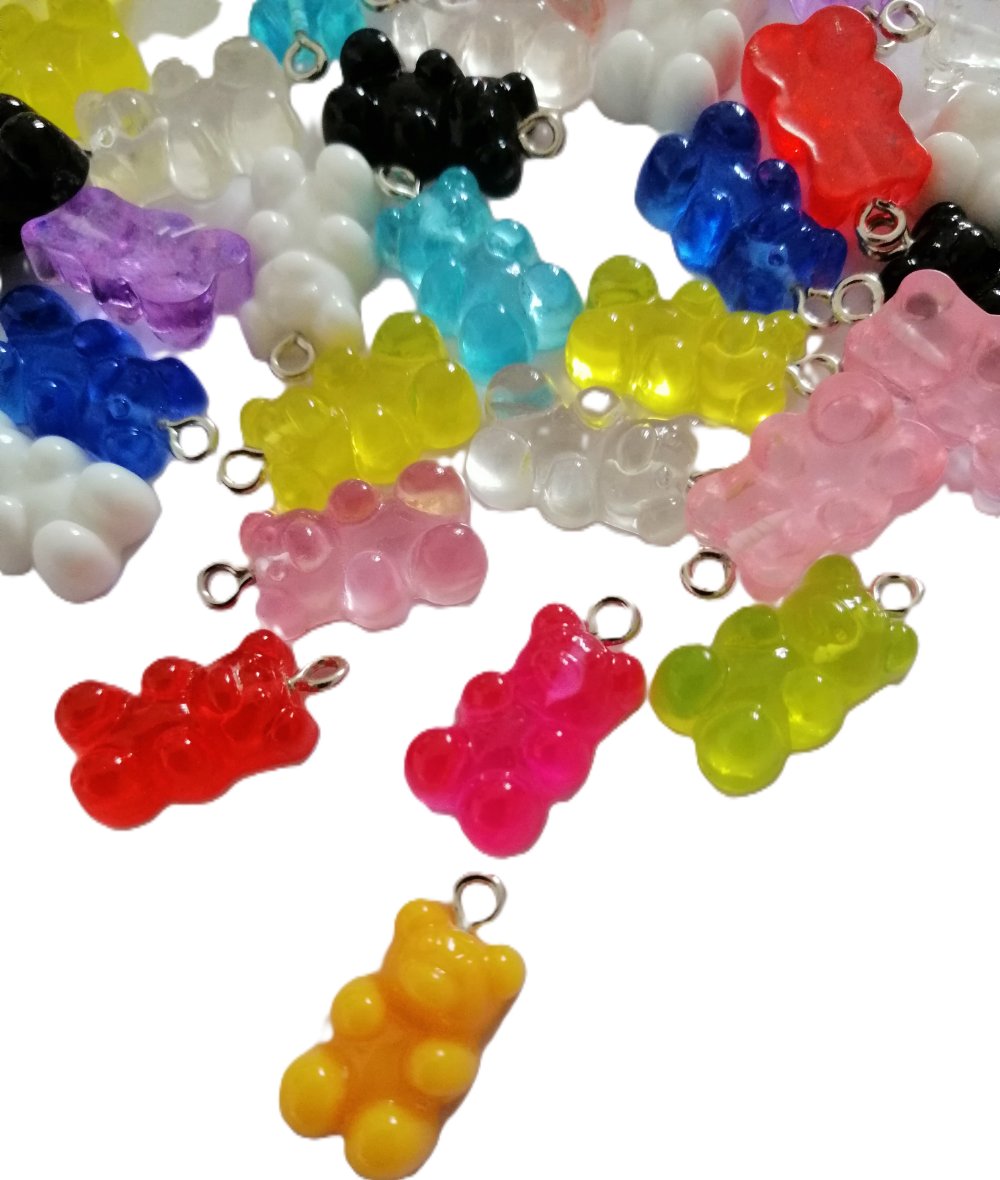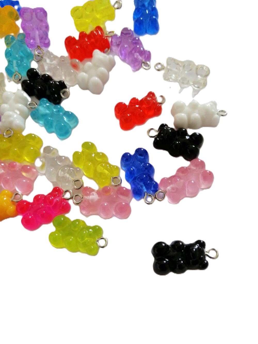 4 pendentifs ours acrylique mauve jaune noir blanc bleu vert rose transparent orange