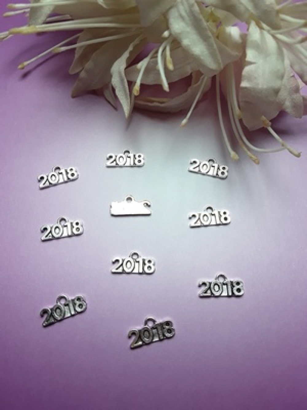 5 breloques date 2018 année souvenir 15x8mm argent tibétain