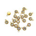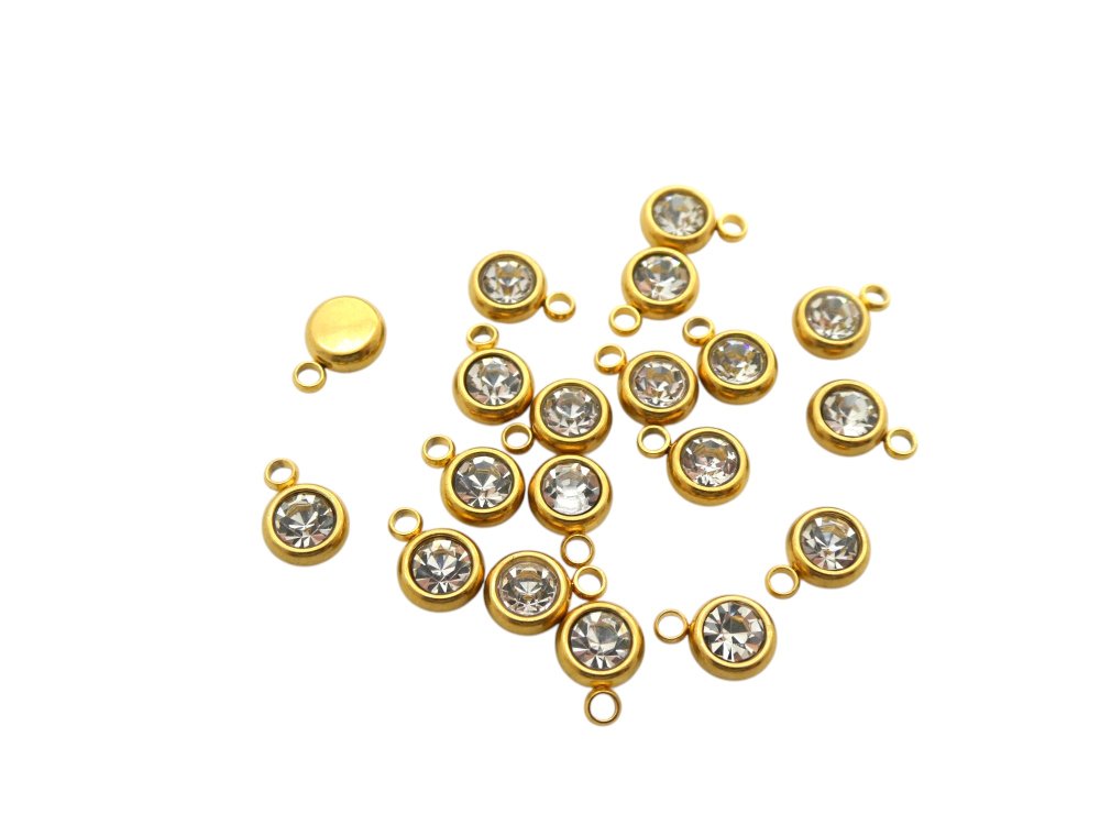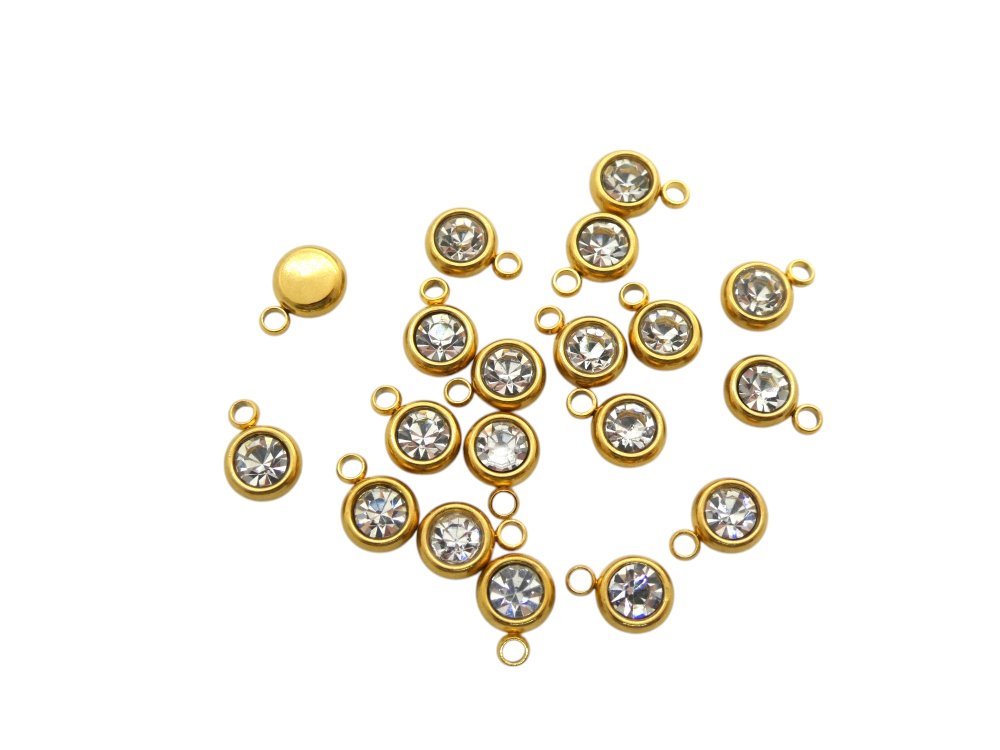 Lot de 5 petites breloques, pampilles en acier inoxydable doré et strass en verre cristal.