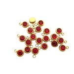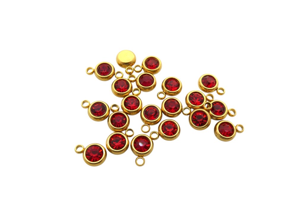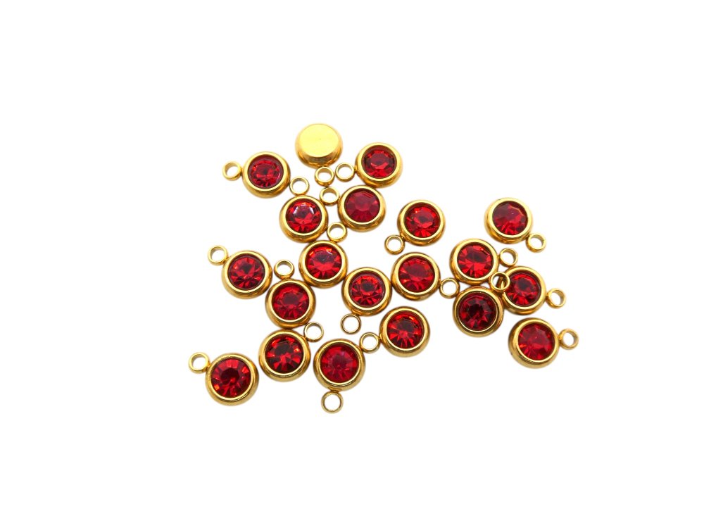 Lot de 5 petites breloques, pampilles en acier inoxydable doré et strass en verre rouge.