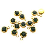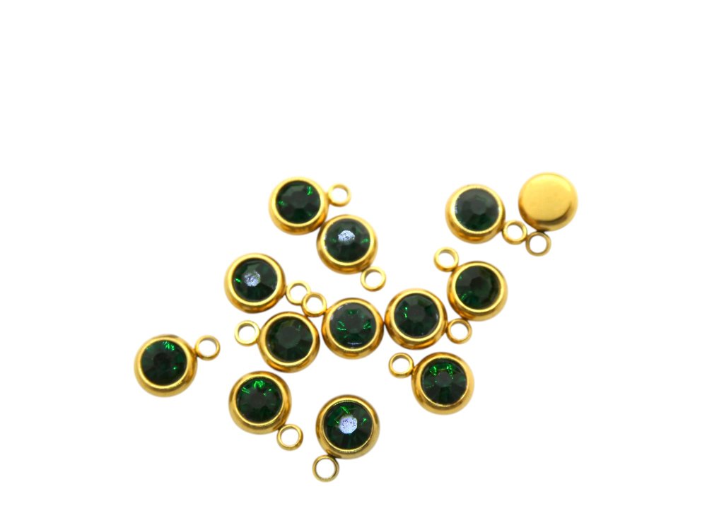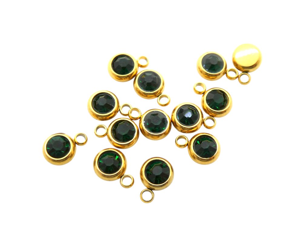 Lot de 5 petites breloques, pampilles en acier inoxydable doré et strass en verre vert foncé.