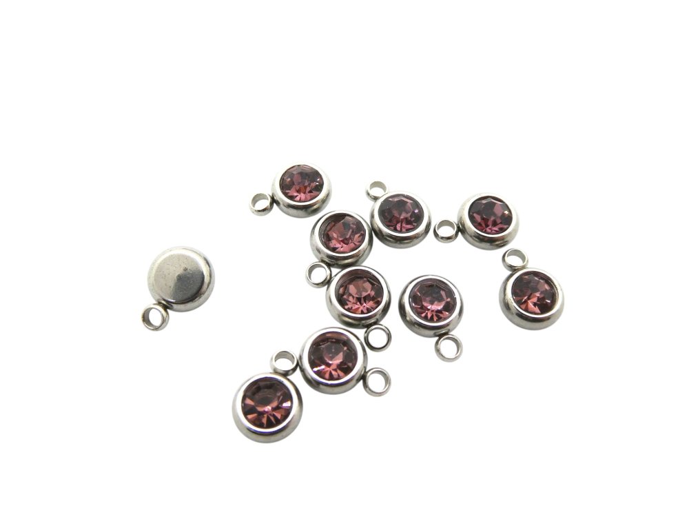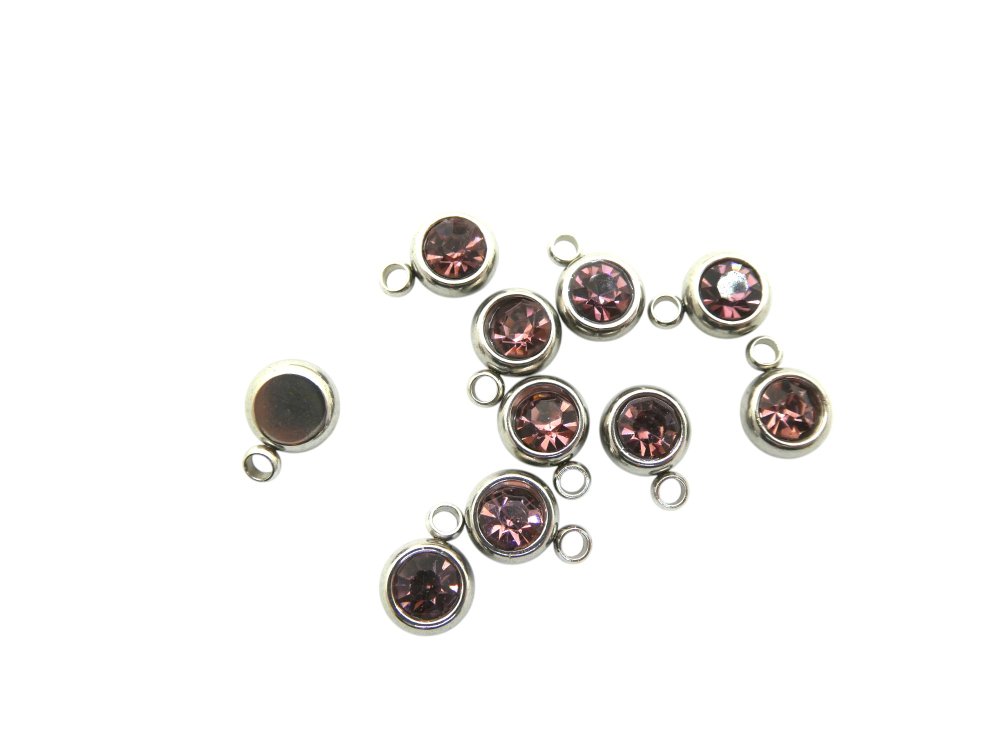 Lot de 5 petites breloques, pampilles en acier inoxydable et strass en verre rose.