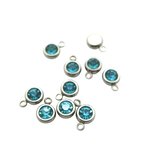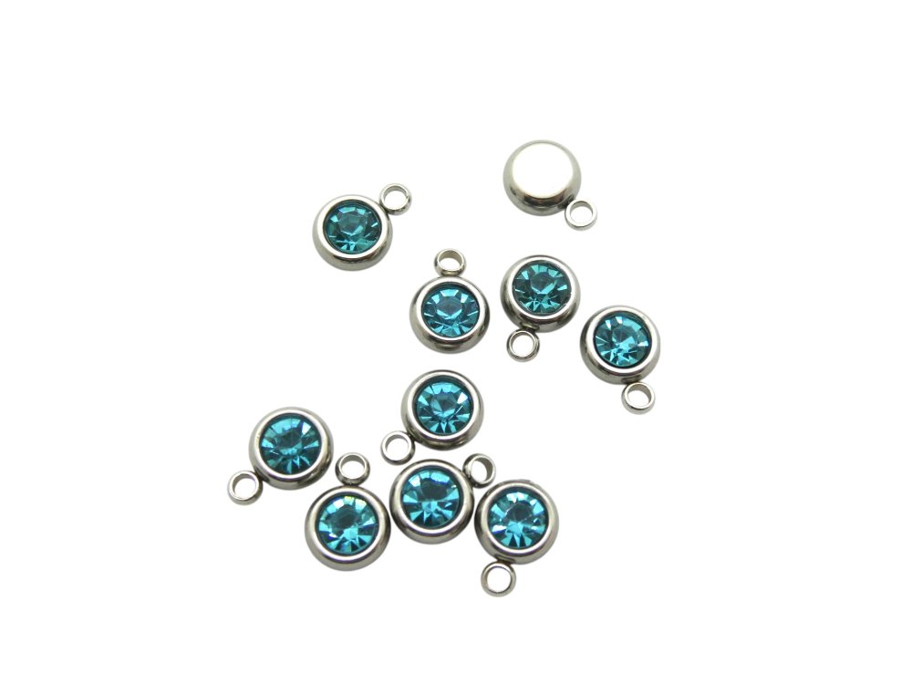 Lot de 5 petites breloques, pampilles en acier inoxydable et strass en verre bleu.