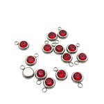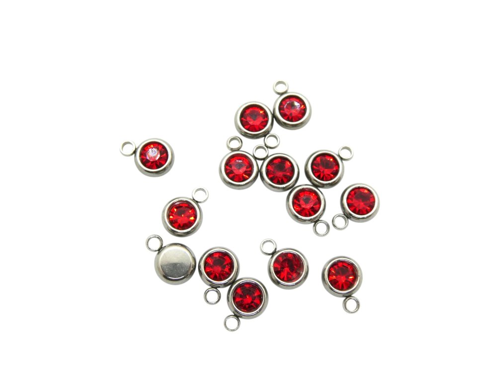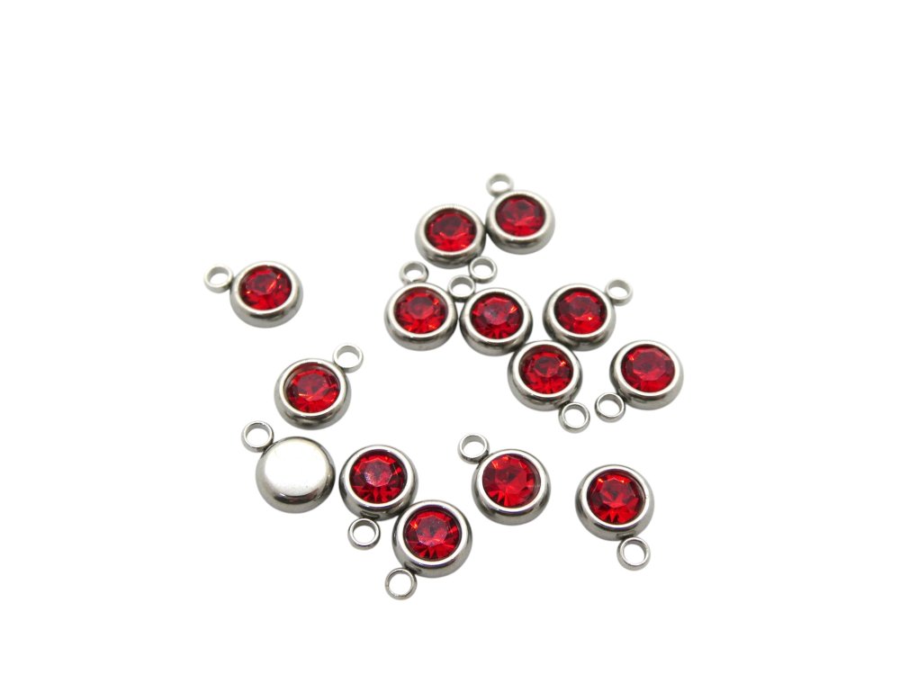 Lot de 5 petites breloques, pampilles en acier inoxydable et strass en verre rouge.