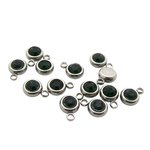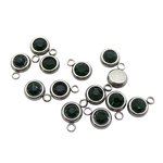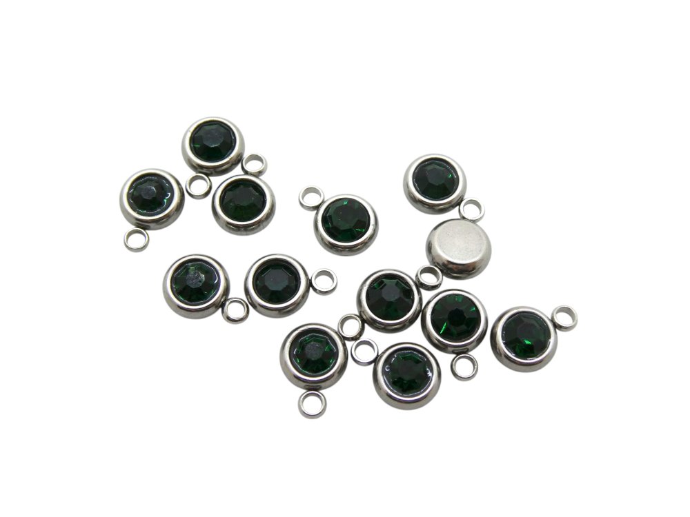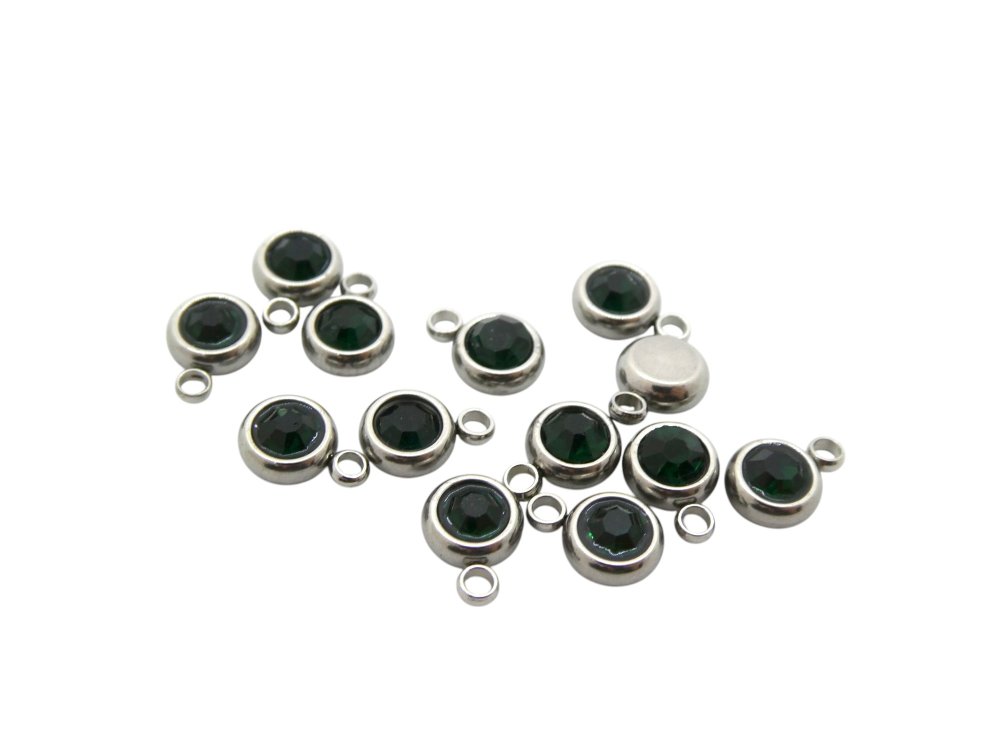 Lot de 5 petites breloques, pampilles en acier inoxydable et strass en verre vert foncé.