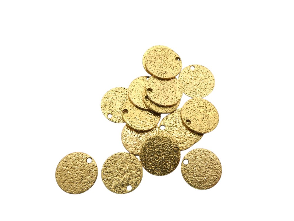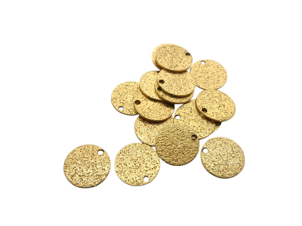 Lot de 5 breloques, sequins ronds 12mm en acier inoxydable doré pailleté.