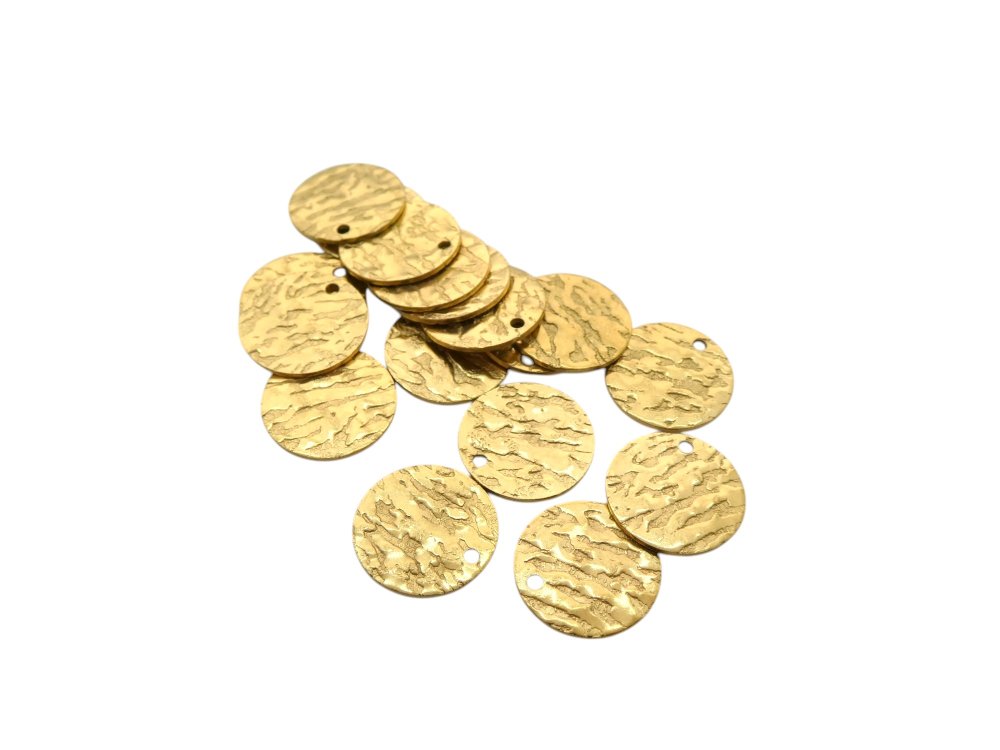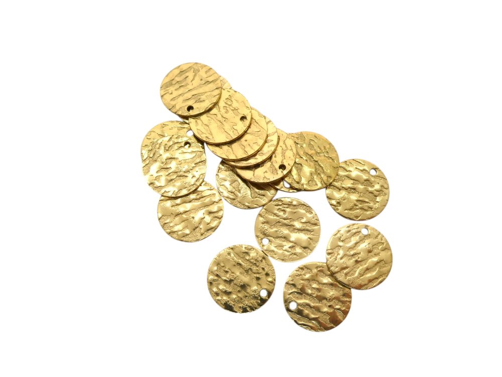 Lot de 5 breloques, sequins ronds texturés de 15mm en acier inoxydable doré.