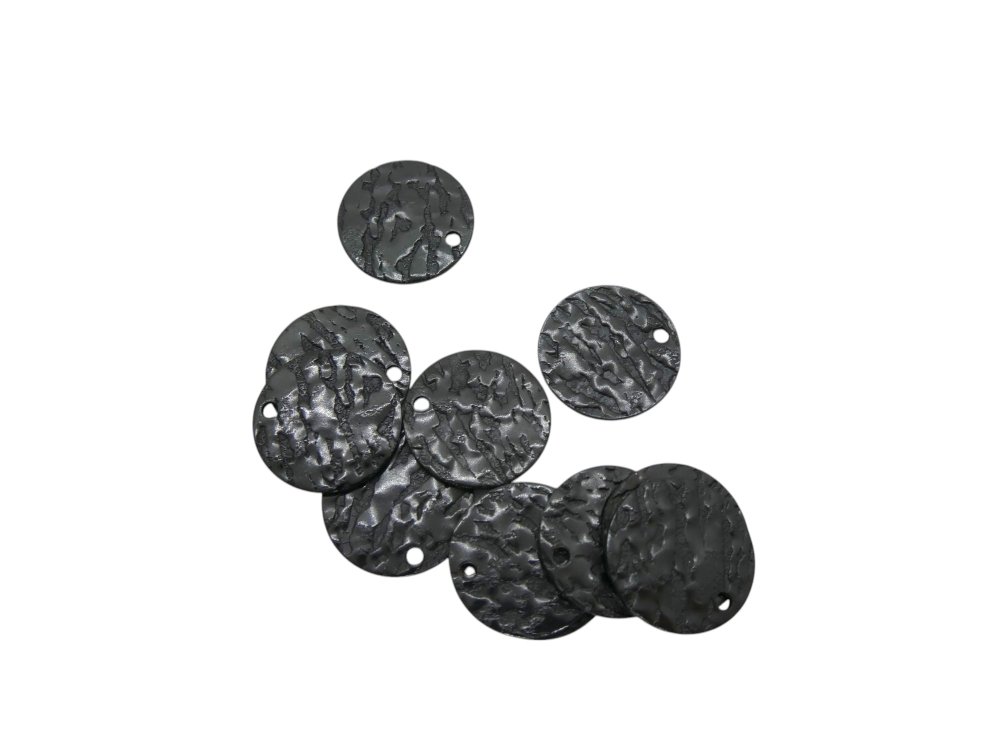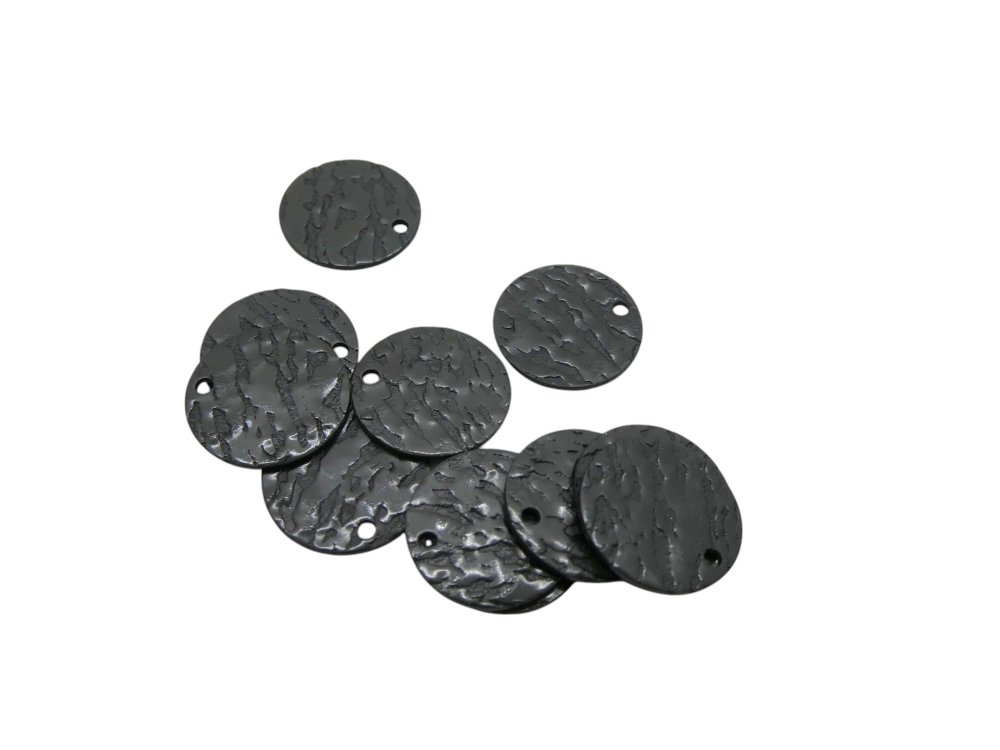 Lot de 5 breloques, sequins ronds texturés de 15mm en acier inoxydable couleur noir.