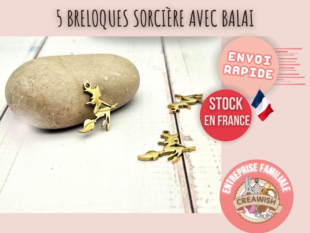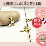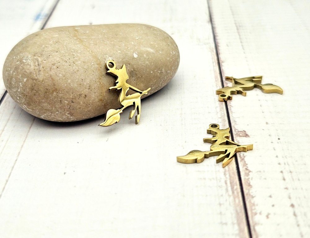 5 breloques sorcière sur balai halloween acier inoxydable doré