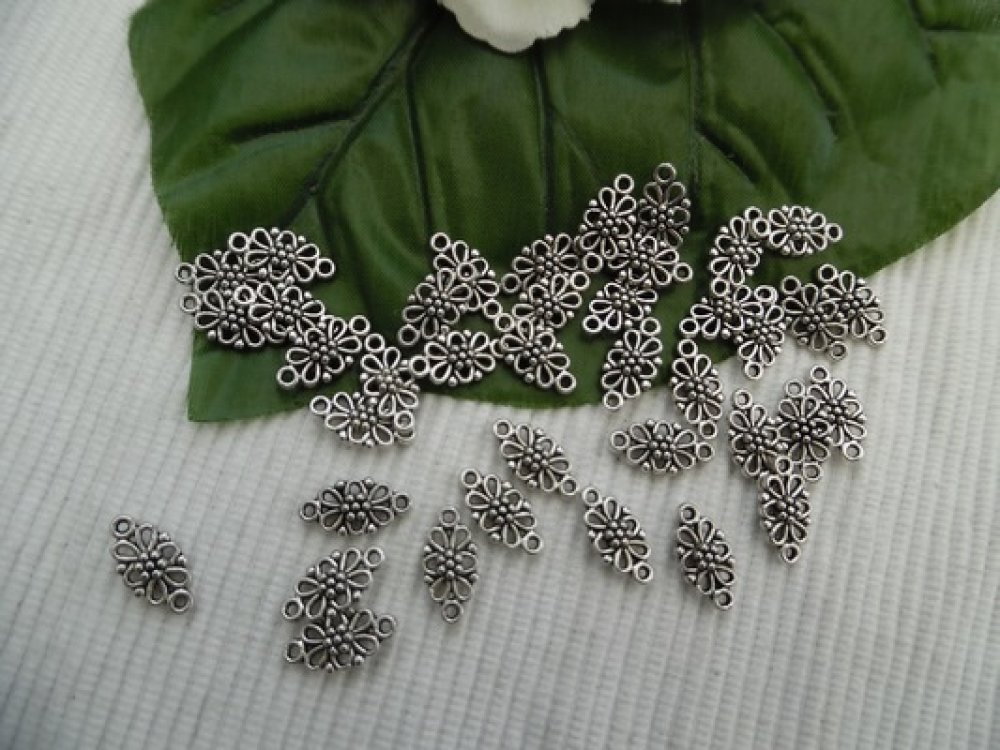 5 Connecteurs bijou fleur 15x8x3.5mm argent tibétain 3D