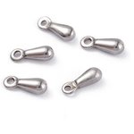 5 petits pendentifs gouttes en acier inoxydable 304 argenté couleur platine