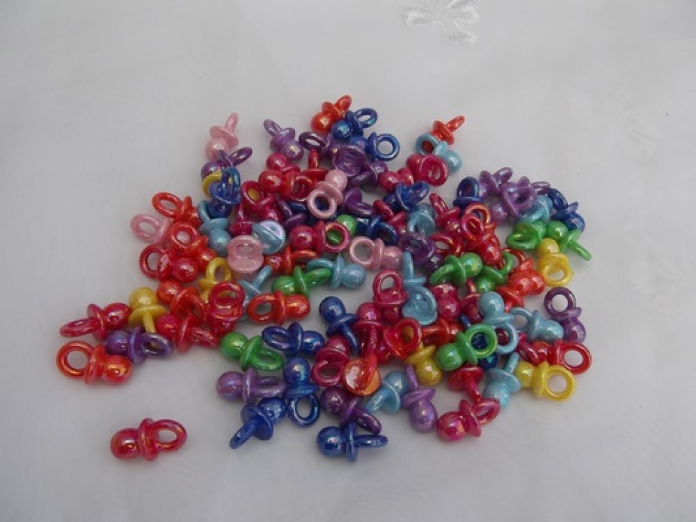 5 pendentifs grelot tétine bébé 21x11mm orange nacrée acrylique