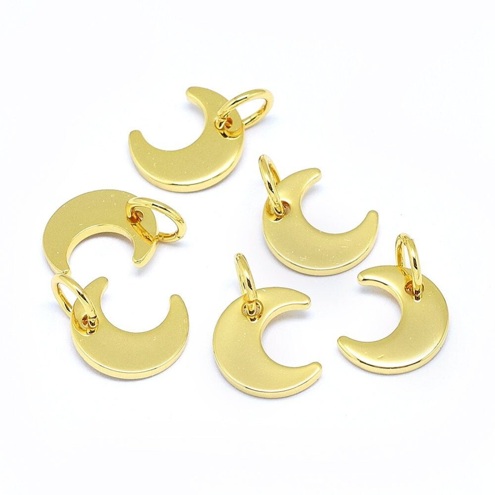5 Pendentifs lune doré plaqué ou 18k breloque lune doré 9mm