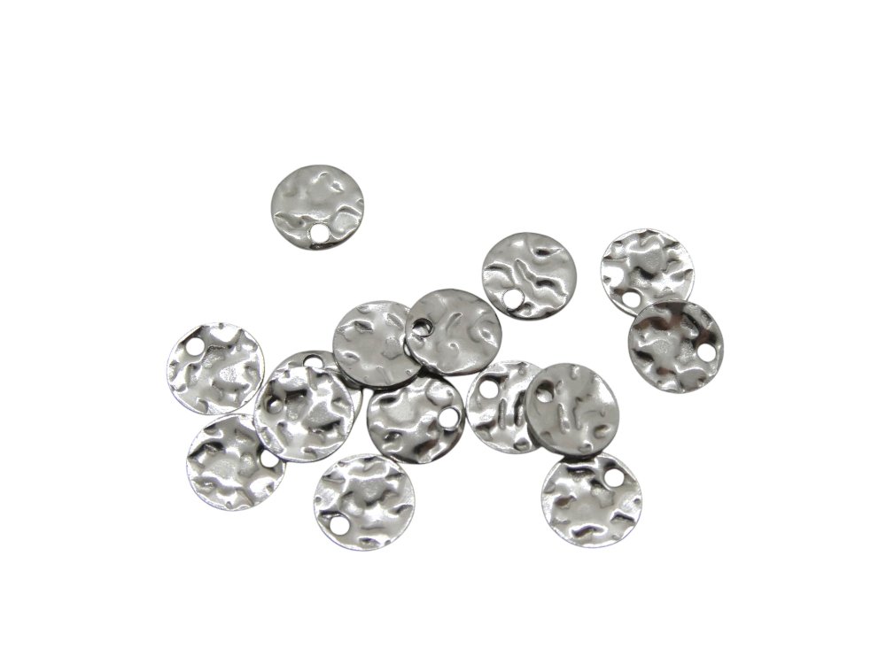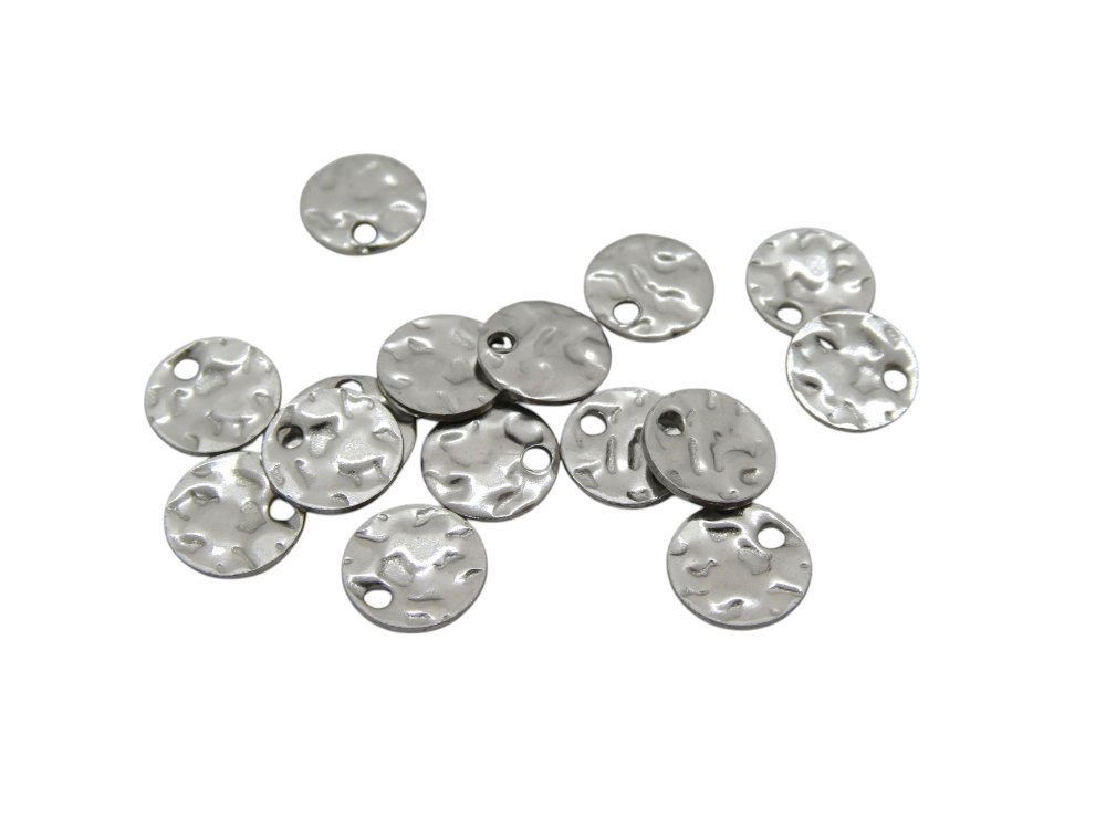 Lot de 6 breloques, sequins ronds martelés de 8mm en acier inoxydable.