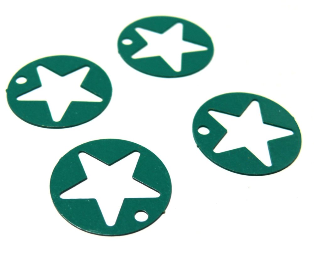 AC119915 Lot de 4 Estampes rondes étoile perforée 18mm couleur Vert Bleu Pétrole