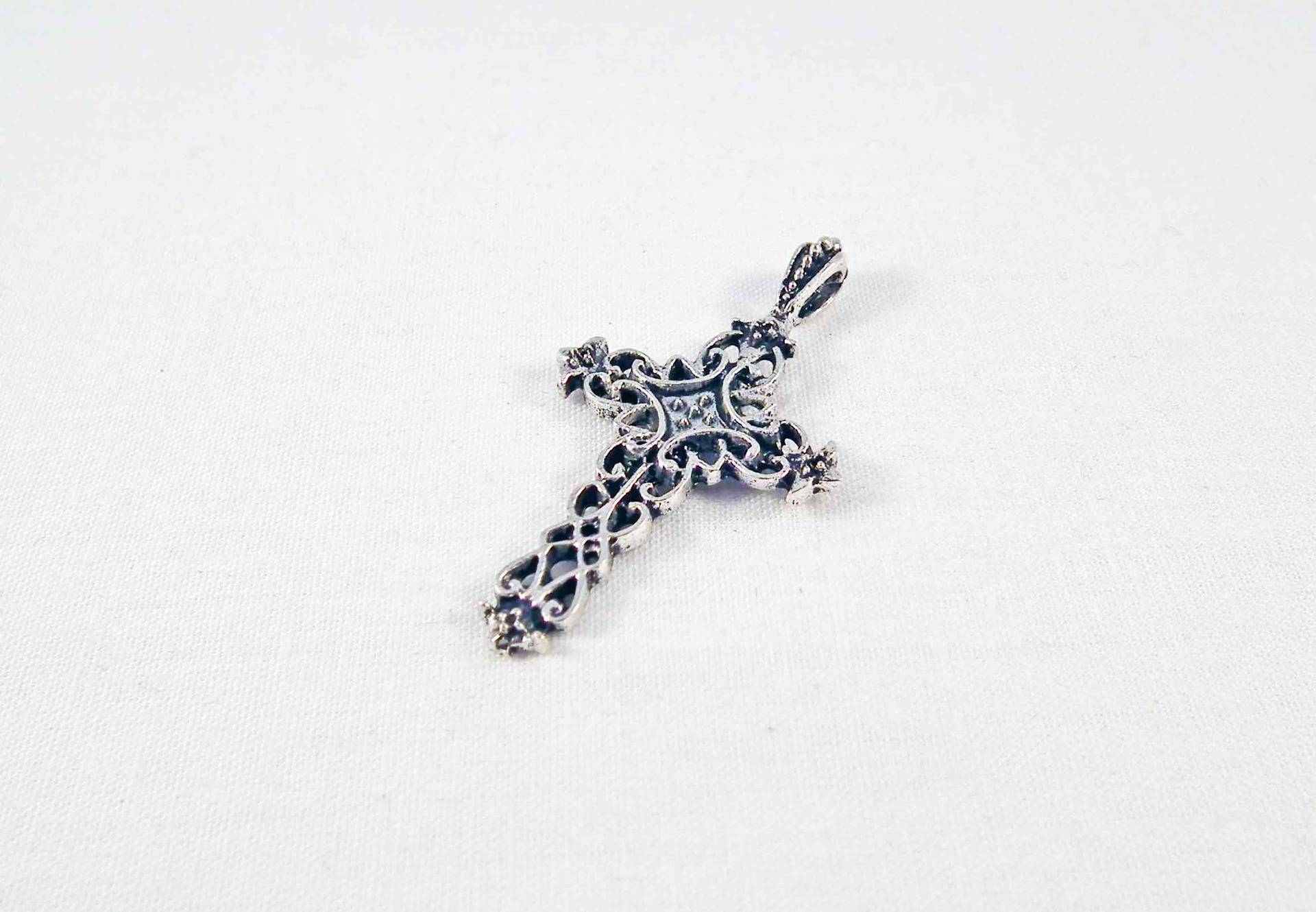 Pendentif Breloque Croix à Motifs Argent Vieilli de 3.8cm X 2cm.