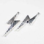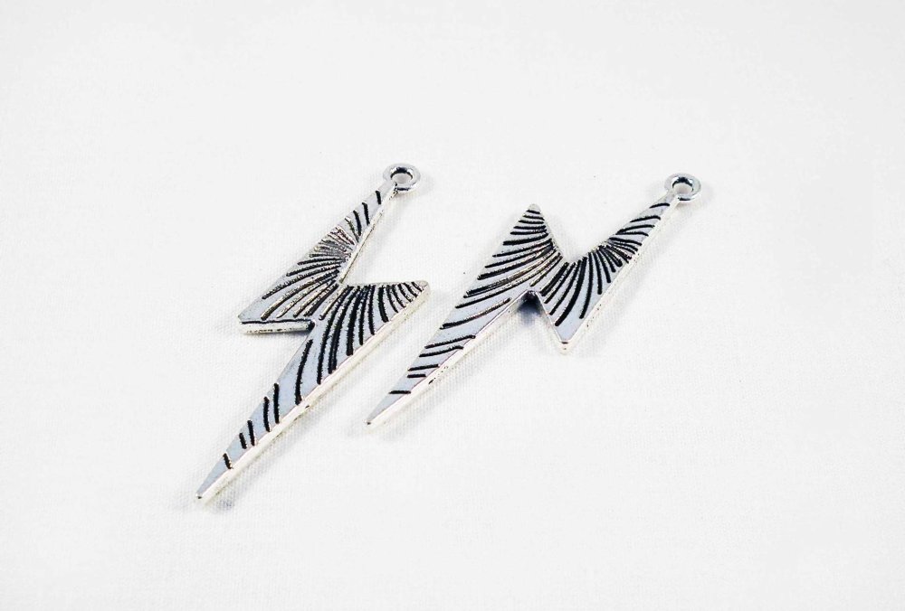 Lot de 2 Breloques Pendentifs Éclair Zig Zag à Motifs Rayures en Argent Vieilli, identiques sur les deux côtés de la breloque, 50mm X 14mm.