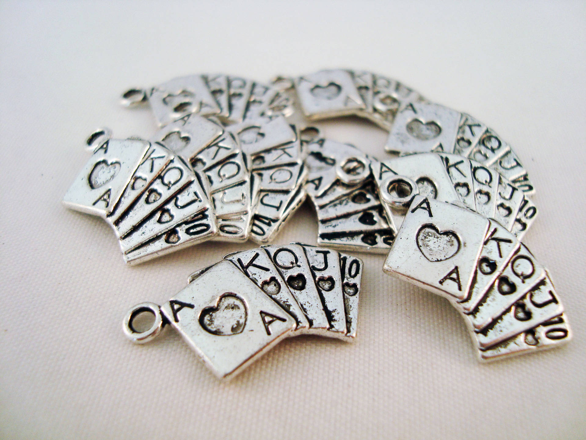Lot de 10 Breloques Poker Quinte Flush Royale Argentée
