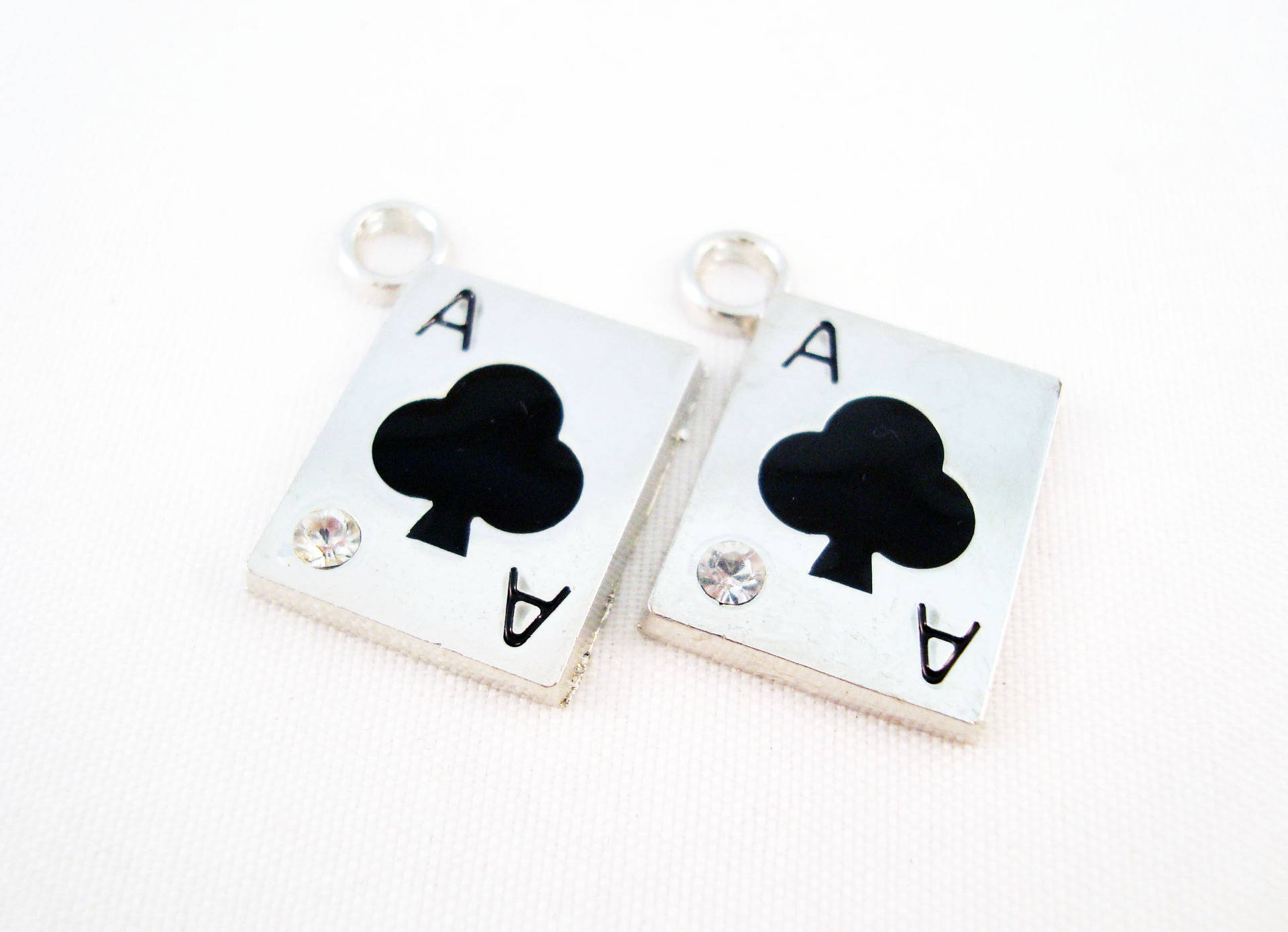 Lot de 2 Pendentifs As de Trèfle avec Cristal Strass Argenté