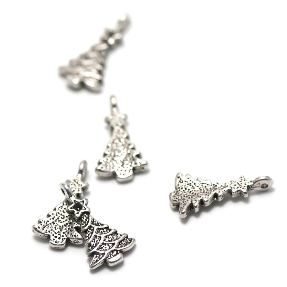 B- 20 breloques "sapin de noël",20x11 mm,argenté, 061A