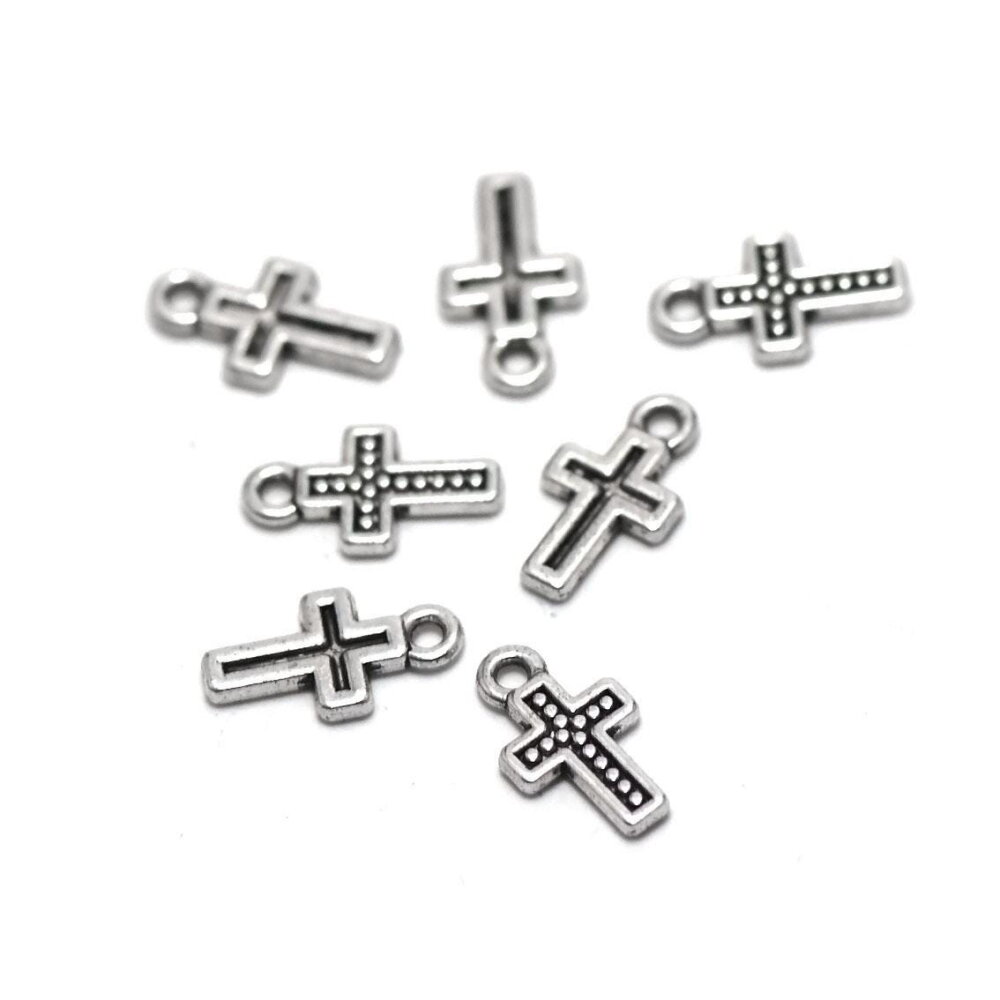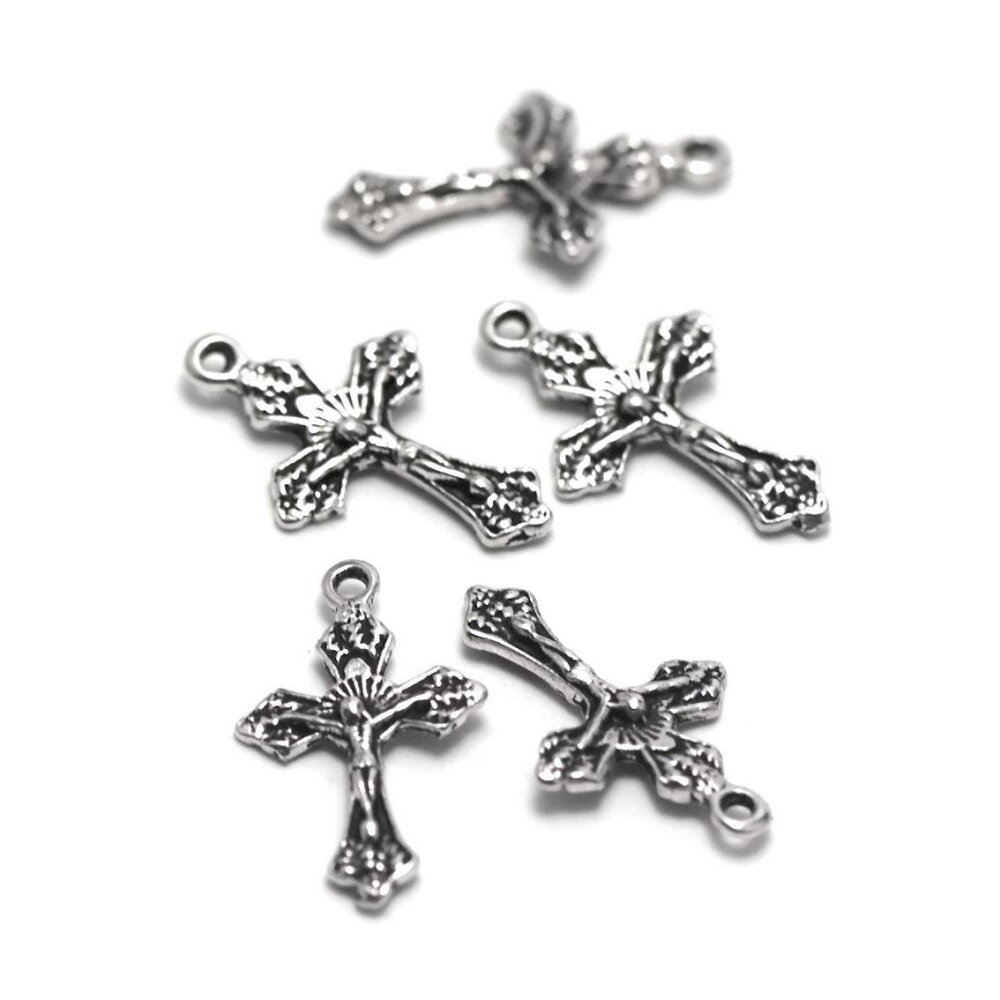 A- 10 breloques "croix christ",23x14 mm,argenté, 005A