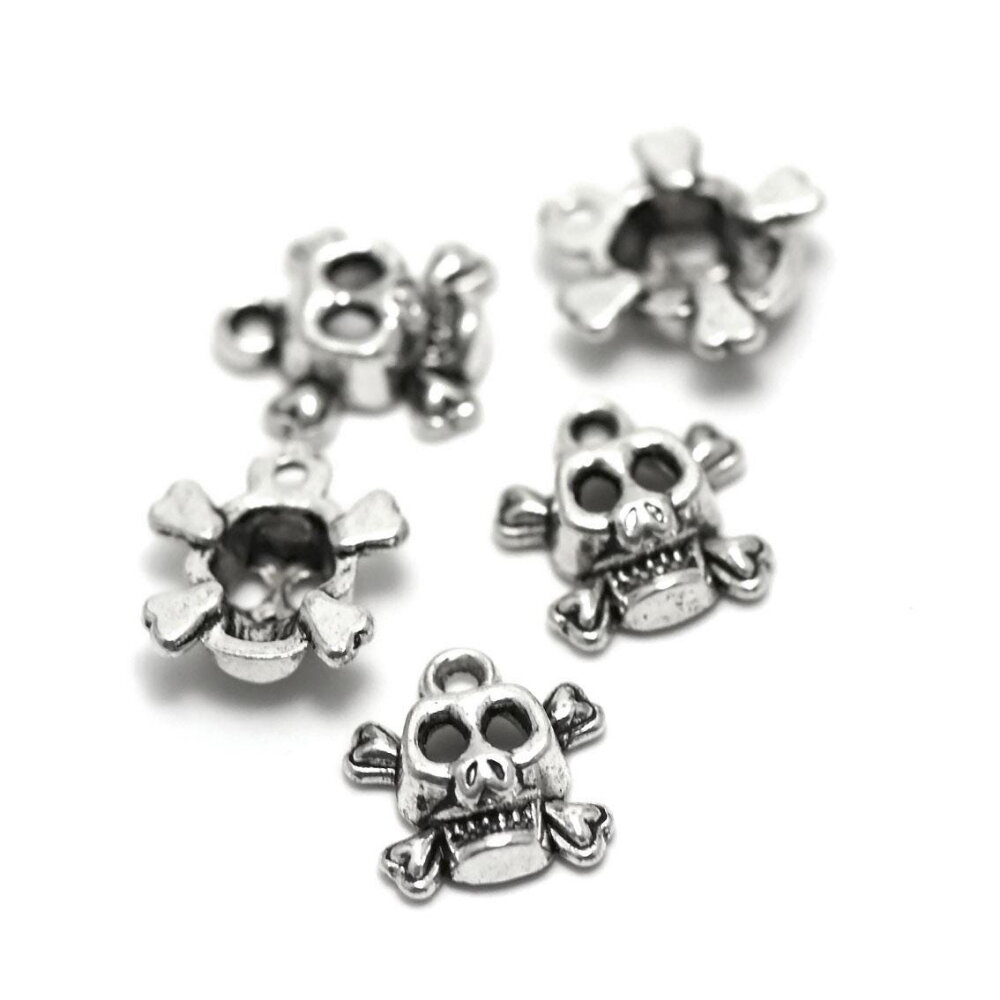 C- 20 breloques "tête de mort ",14x13x5 mm,argenté, 007A