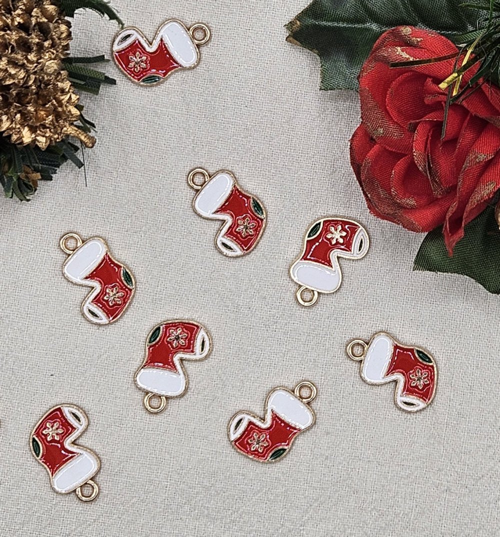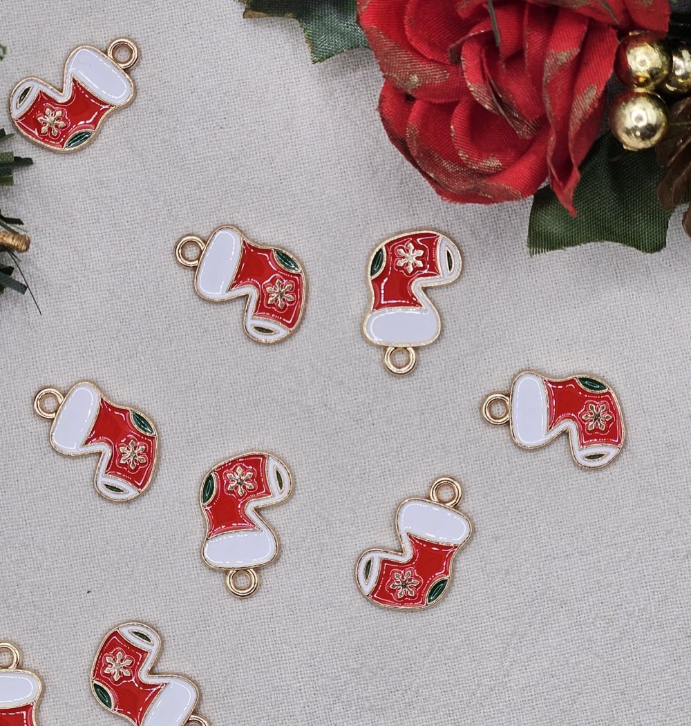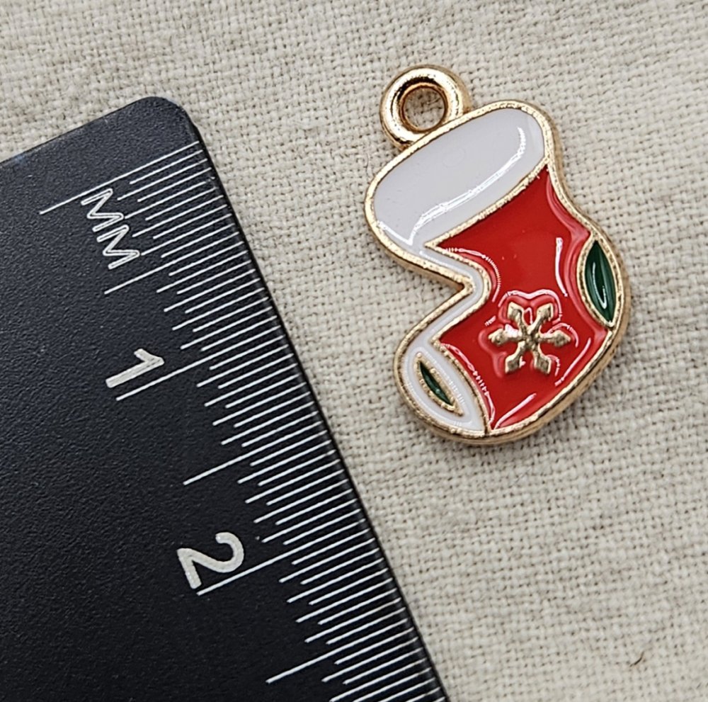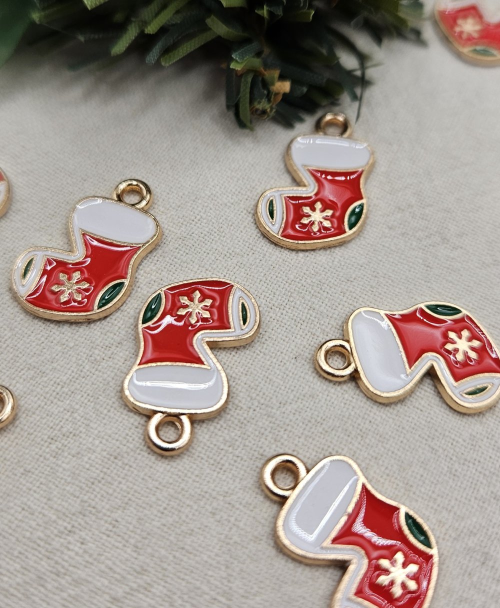 breloque en métal pour créations de Noël, fabrication de Noël, pendentif en métal, breloque noël, charm noël, chaussette de Noël, breloque émaillée, breloque dorée, pendentif de Noël